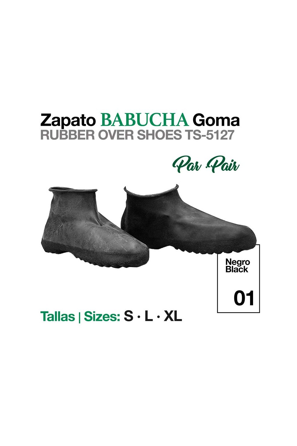 Zapato babucha de goma elástica muy extensible que protege las botas, botines, zapatos, etc. del barro y del agua, manteniendo el calzado limpio antes de montar.