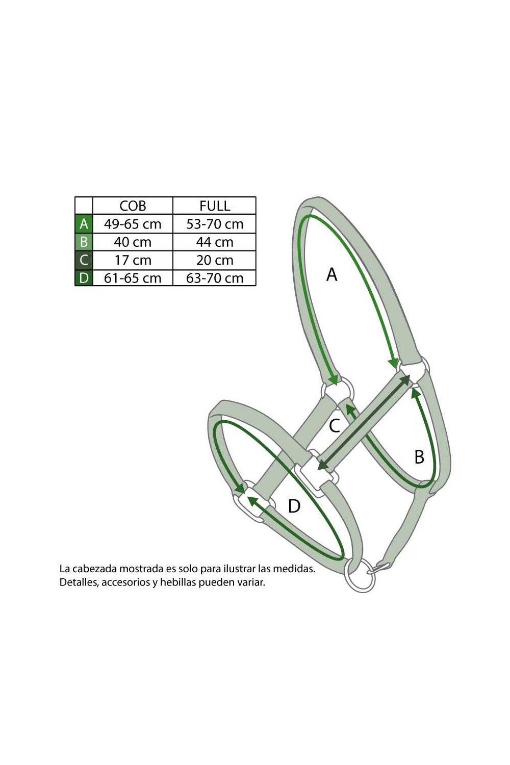 • Dos hebillas para regulación en ambos lados del testero y una en la muserola