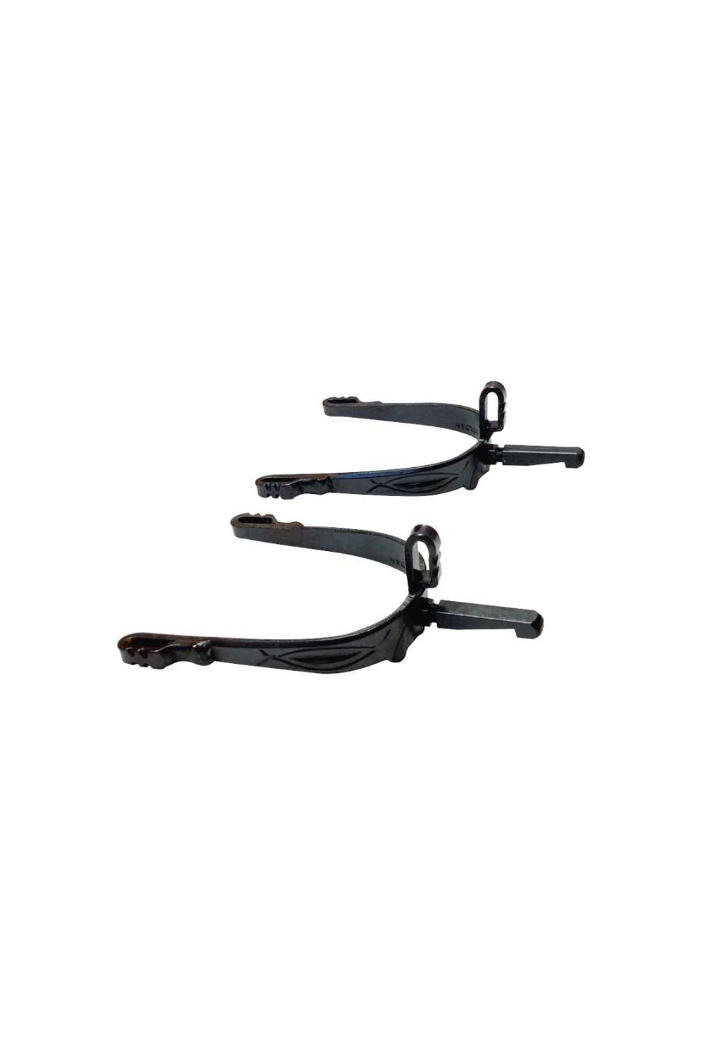 Espuela de primera calidad utilizada en la monta tradicional vaquera española, con acabado pavonado, de contacto.