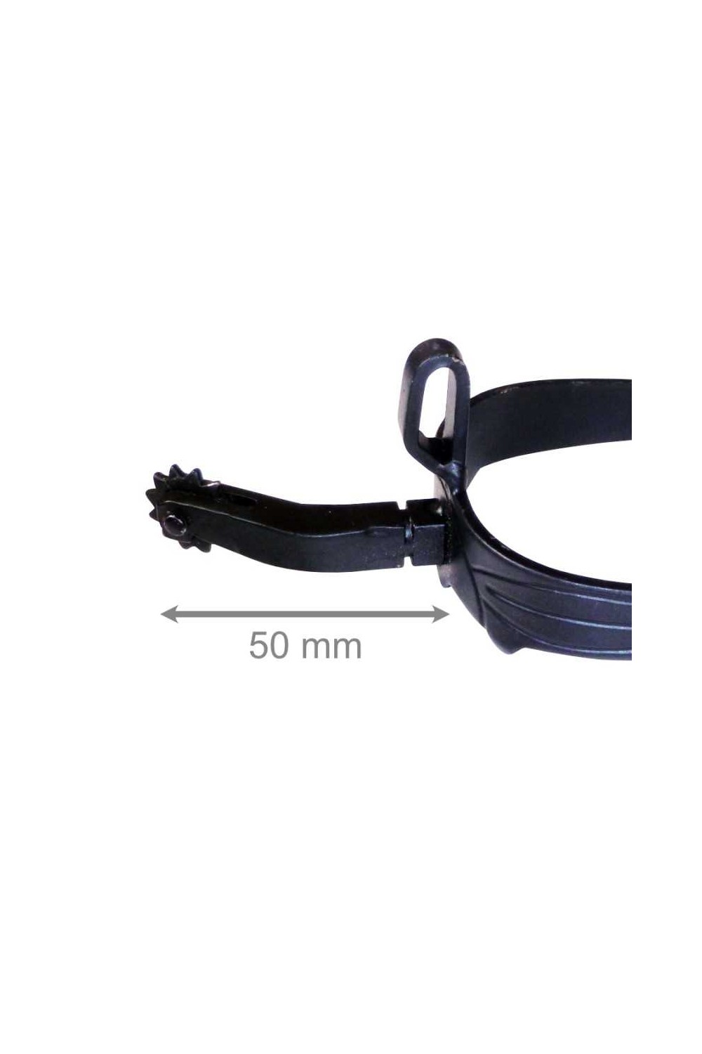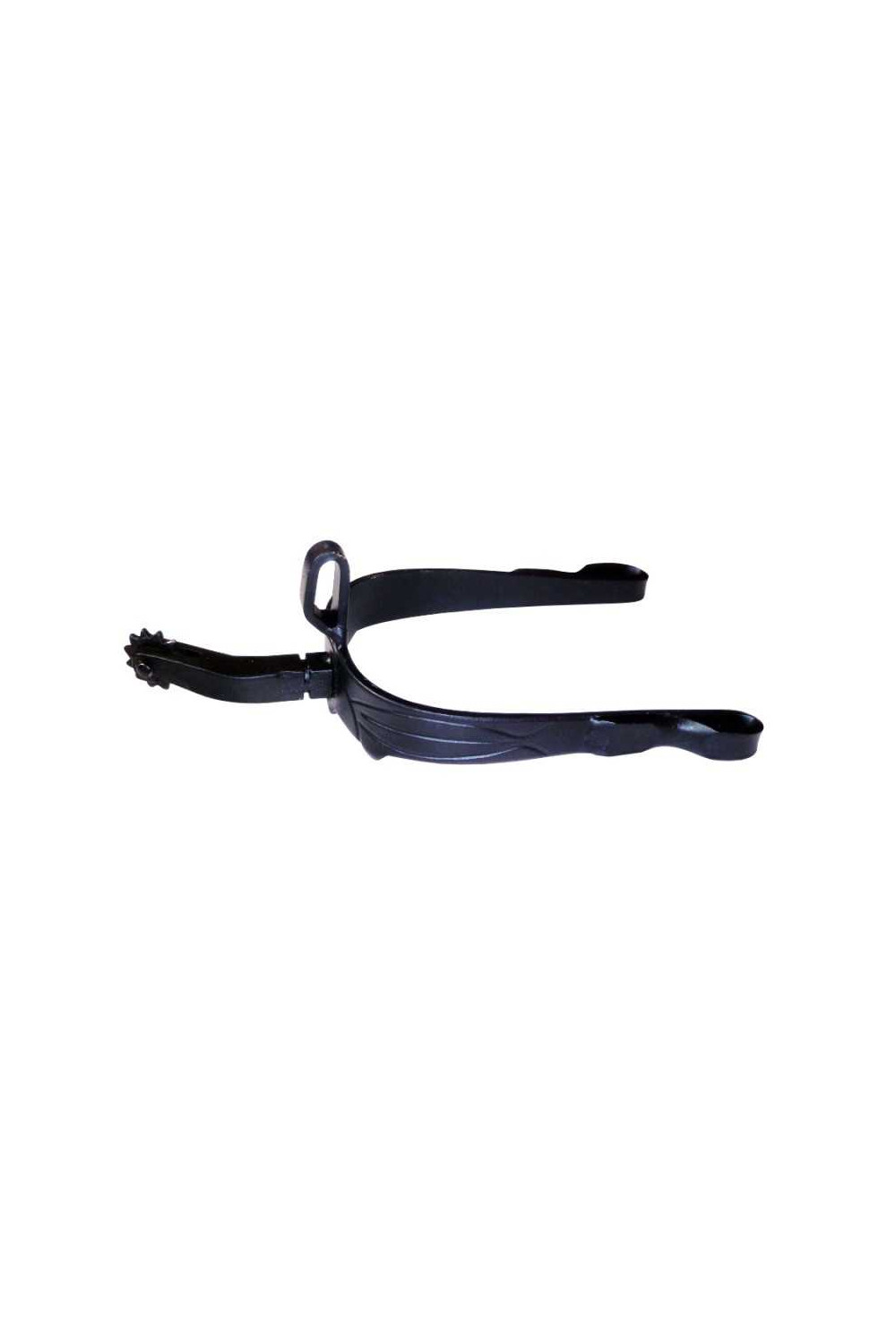 Espuela de estilo vaquero pavonada con ruleta inglesa de 12 puntas.
