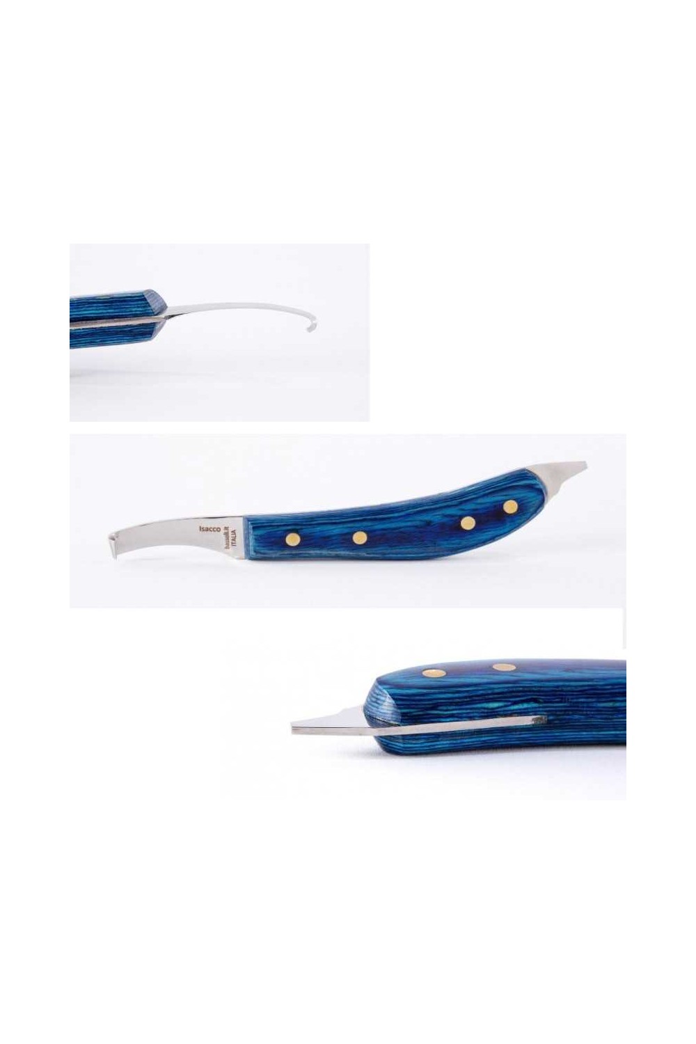 Legra similar al modelo Ricky con hoja ligeramente curvada, pero más corta, con mango ancho azul para facilitar el trabajo de muñeca mientras se corta el casco. La punta del extremo del mango es un útil limpiacascos para limpiar el pie y ajustarlo en caliente.