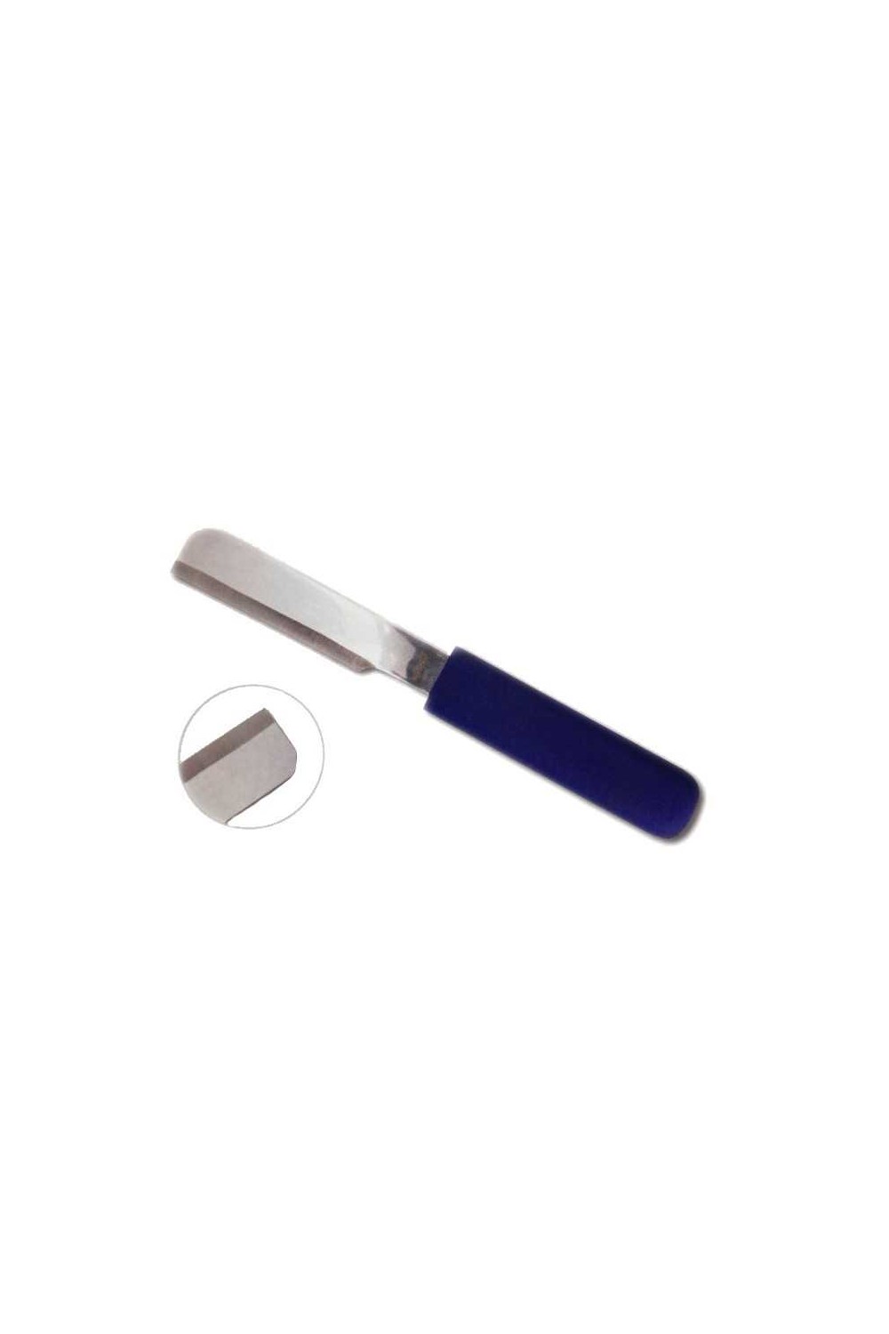 Cuchilla cortacascos ambidiestra con hoja recta y mango de goma.