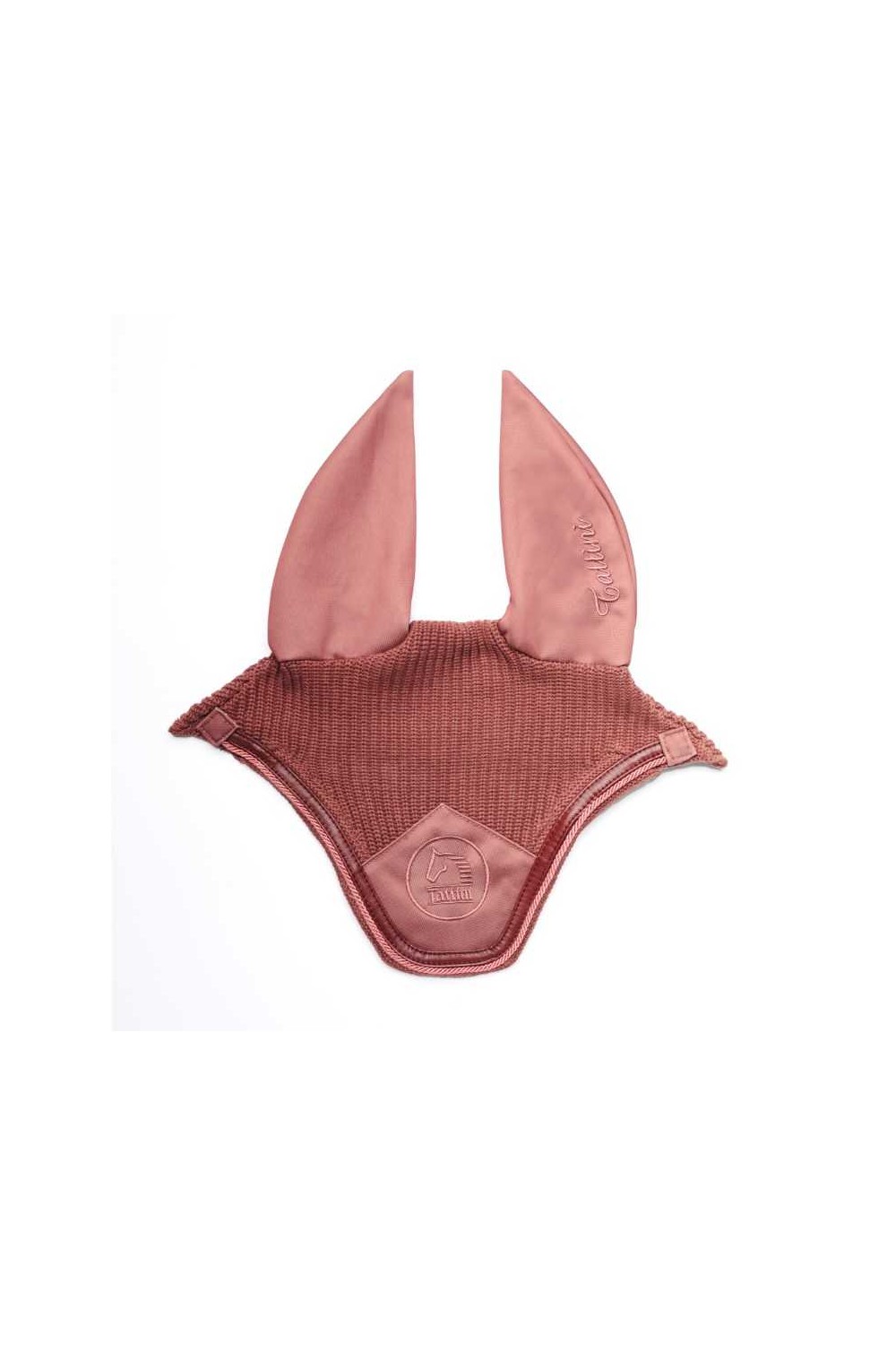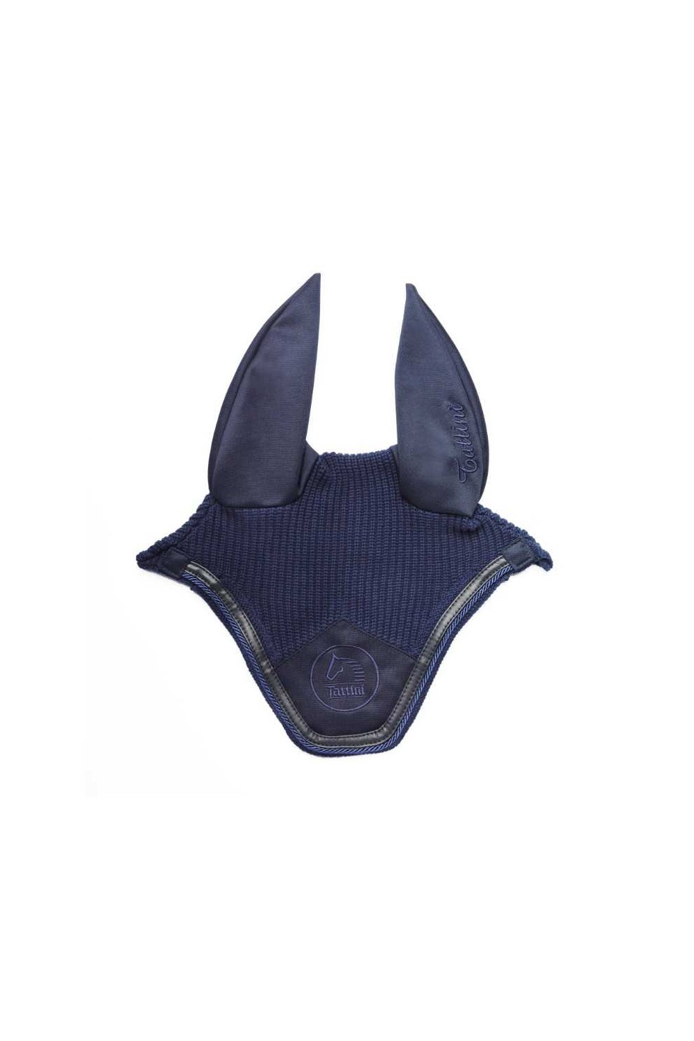 En punto inglés de algodón crochet, de forma cuadrada, con orejeras elásticas, rematado con cordoncillo tono sobre tono y doble personalización con logo frontal y bordado Tattini en la oreja izquierda.