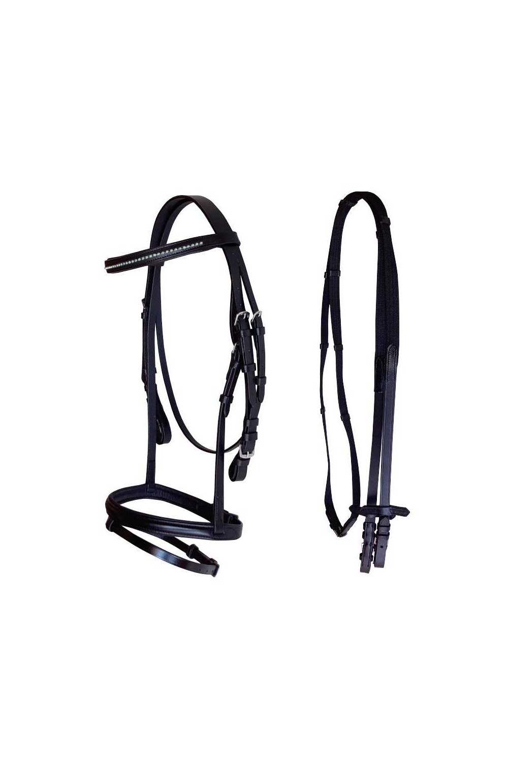 Cabezada para filete con riendas de lona, frontalera con línea de piedras