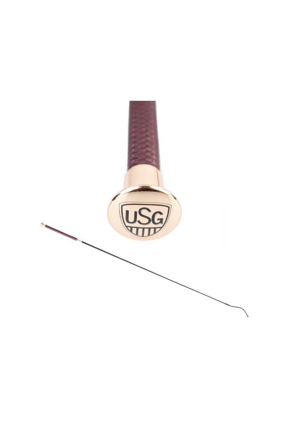 Fusta de doma Chic negra con elegante empuñadura y logo USG grabado.