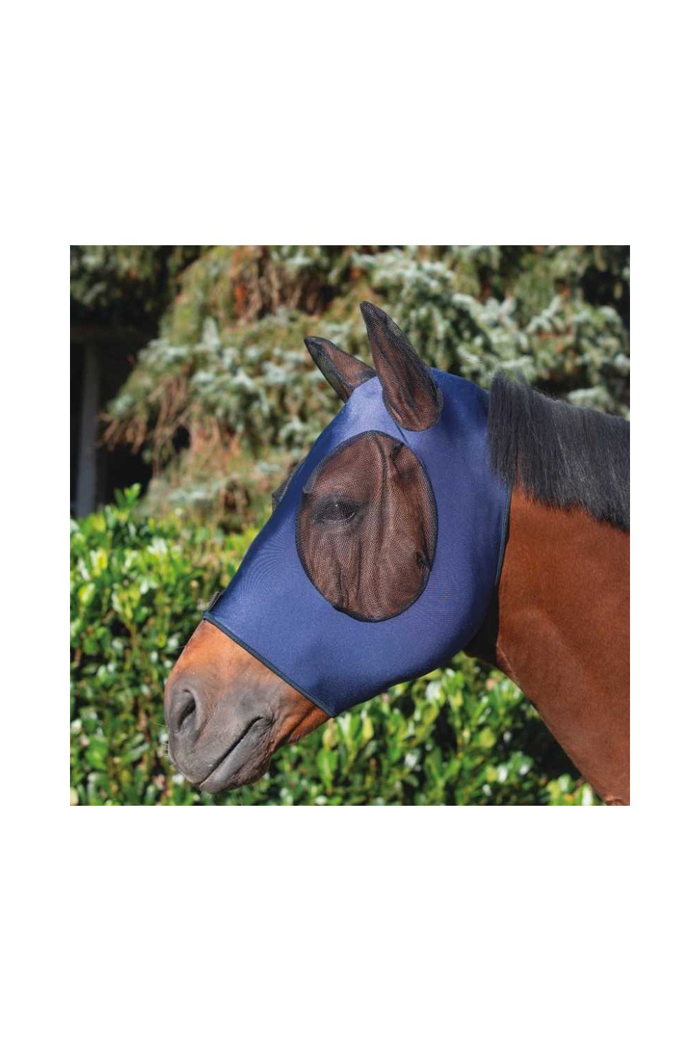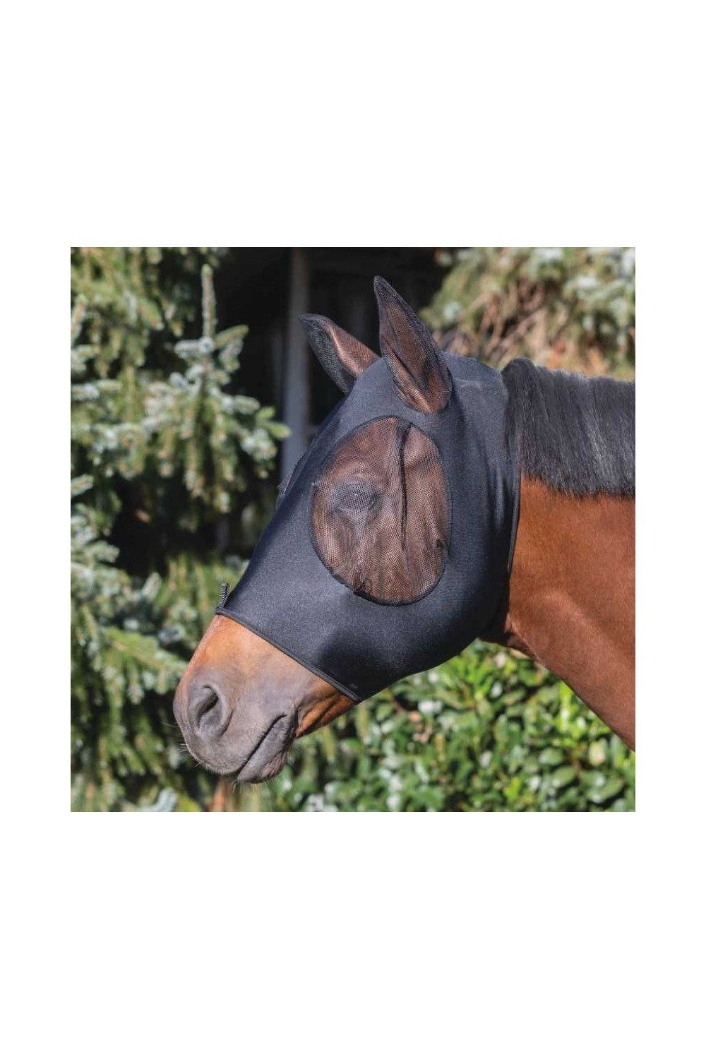 La máscara antimoscas elástica está hecha de un material ligero y elástico y tiene protección para las orejas hecha de tela de malla fina y resistente. Los ojos también están protegidos con esta malla agradable para la piel. Debido a su elasticidad, la máscara antimoscas tiene un ajuste óptimo, no pellizca y protege eficazmente contra las molestas moscas y otros insectos.