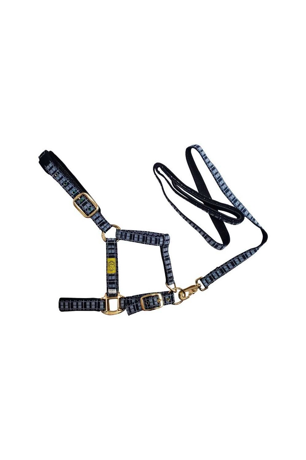 Precioso conjunto para tu pony de cabezada más ramal con estampado de cuadros tartán.