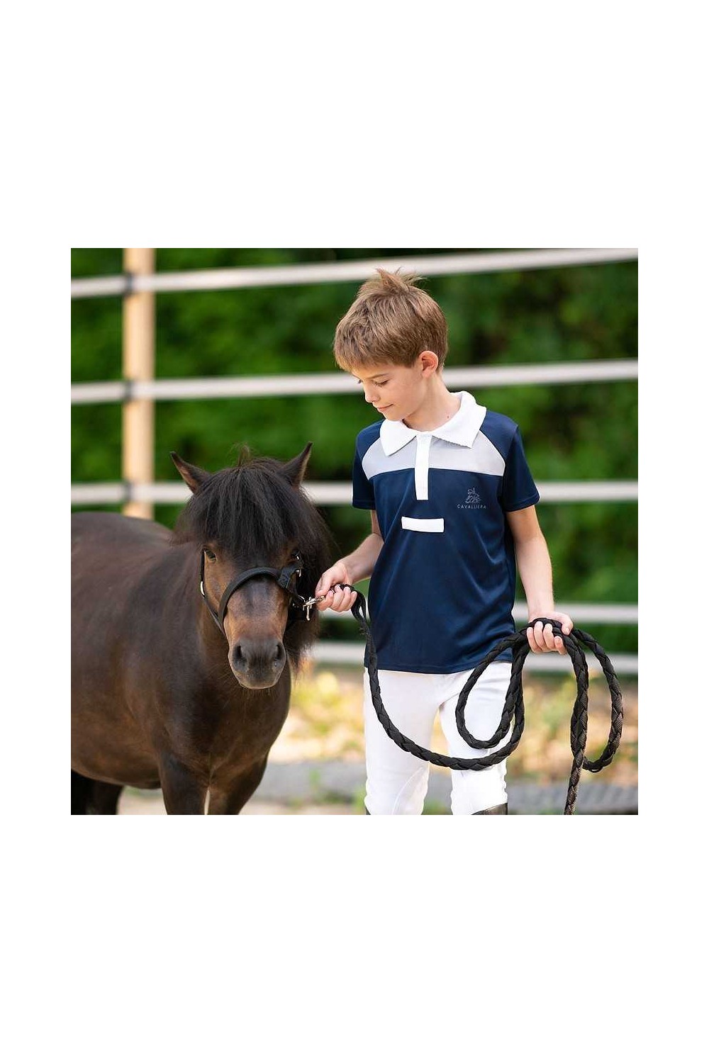 Polo hípico confeccionado con tejidos técnicos especiales que se utilizan en deportes de alto rendimiento. Cuenta con una línea de botones en la parte delantera y un bolsillo para la corbata. Lavable en la lavadora. Se recomienda utilizar una toallita atrapa-color para el primer lavado.