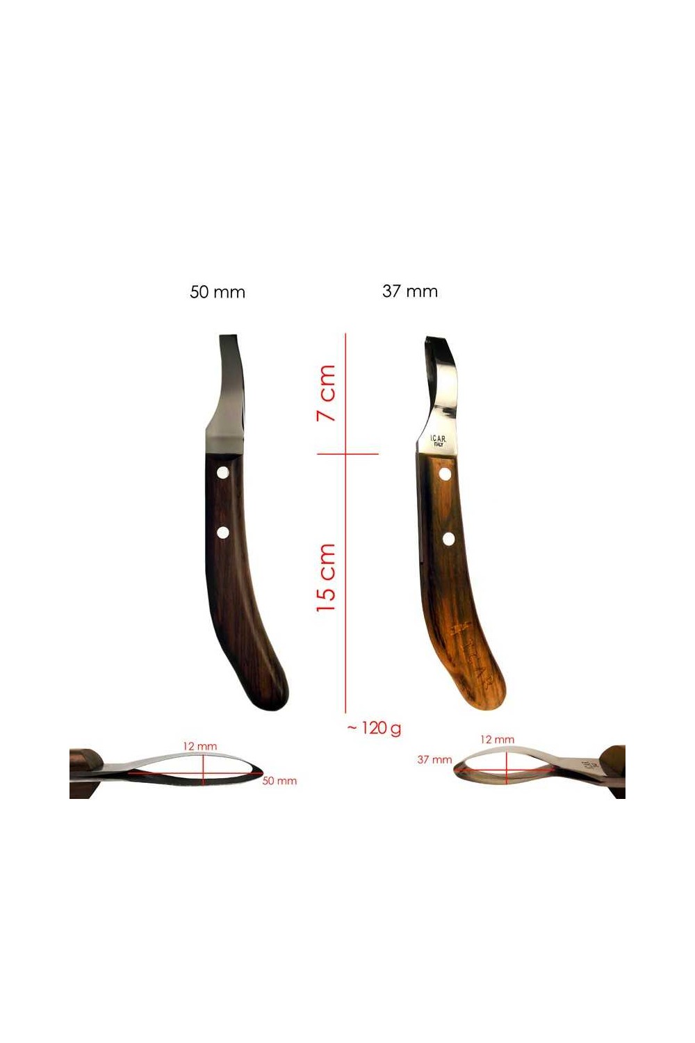 Legra con cuchilla fija de corte oval y mango de madera. Las legras ICAR están fabricadas í­ntegramente en Italia con una hoja de acero inoxidable súper afilada y mango con muy buen agarre. Este es el modelo básico para los amantes del estilo clásico. Muy buena cuchilla con un filo súper afilado.