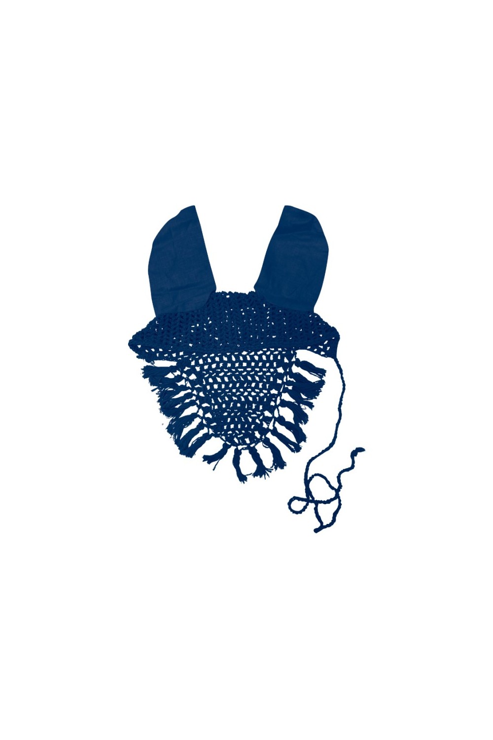 Mosquero para caballo realizado en crochet con cubreorejas, para proteger al caballo de las molestas moscas.