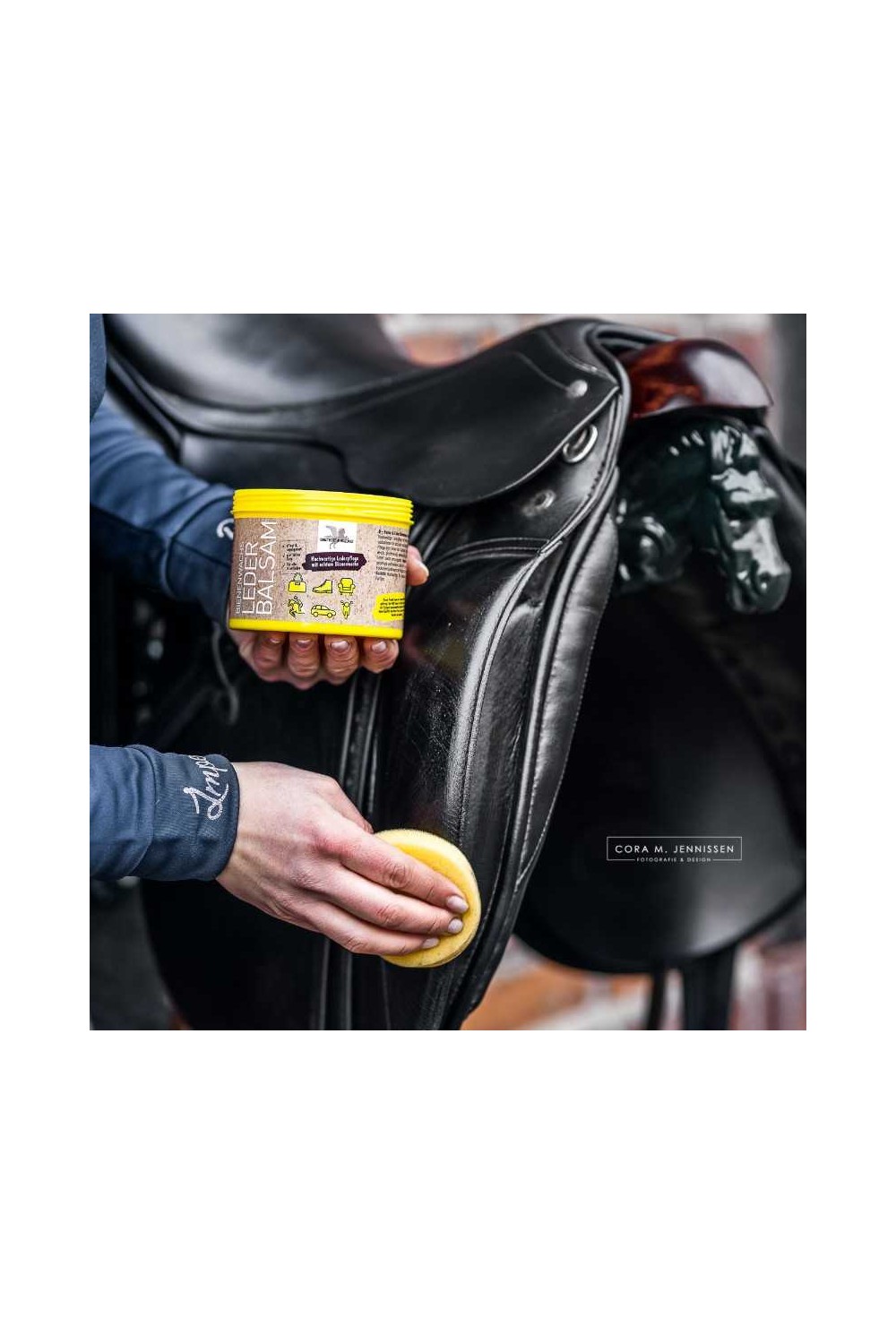 Aplicar sobre el cuero limpio y seco una fina capa de producto. Si el cuero está muy seco, el proceso se puede repetir varias veces.