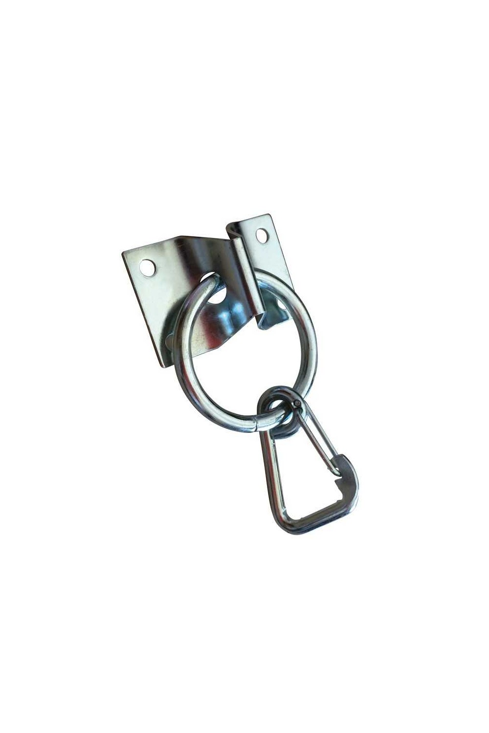 Práctica argolla para atornillar a la pared con mosquetón que permite colocar y retirar cómodamente las redes de paja.