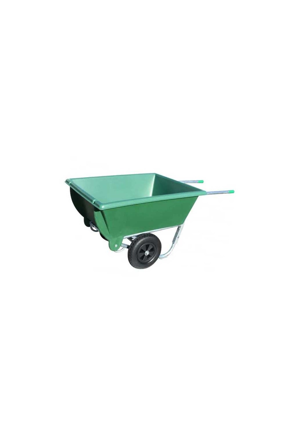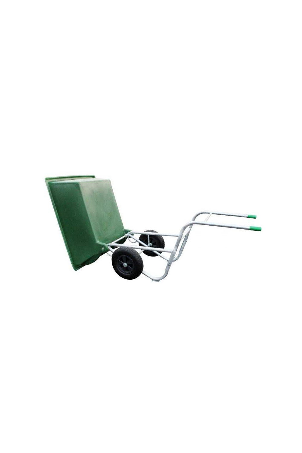 Sistema basculante (patentado) que facilita mucho el vaciado de la carretilla. La inclinación de 165° lo vacía completamente en un solo movimiento y el tanque vuelve a su posición inicial. Depósito de gran capacidad, fijado sobre chasis con 2 ruedas neumáticas de 400 x 80.