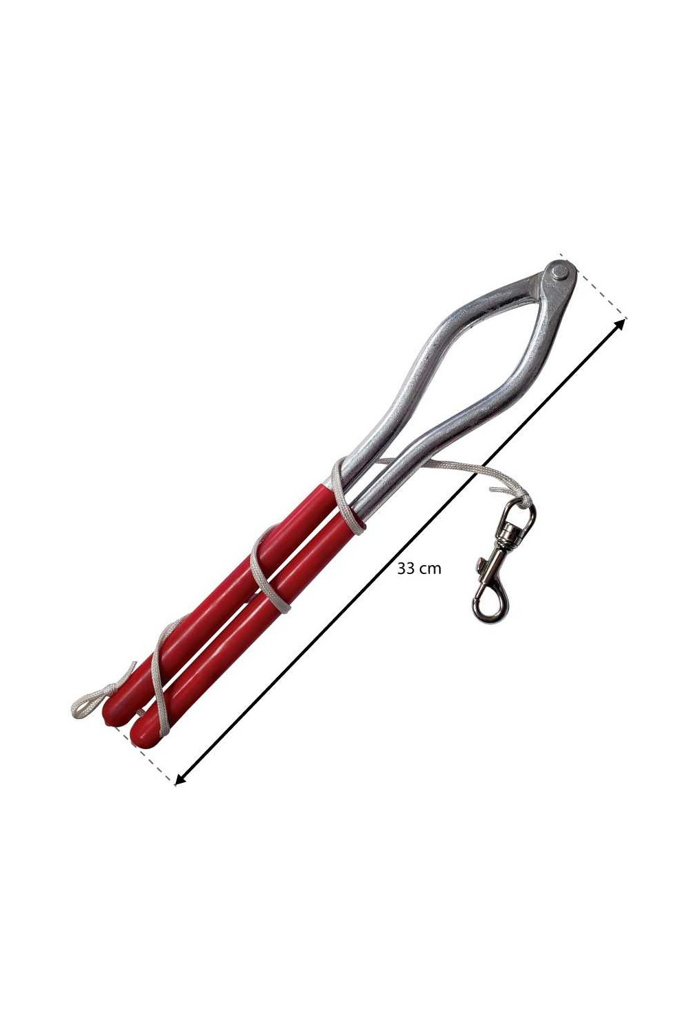 Acial de aluminio con mosquetón. Mangos recubiertos en forro de vinilo antideslizante. Peso ligero.