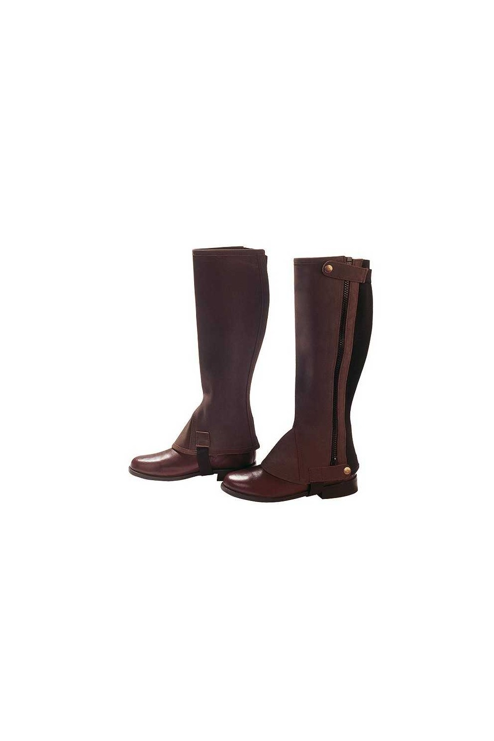 Polainas realizadas en piel con parte trasera elástica para un ajuste perfecto. Cierre lateral de cremallera y botones automáticos en parte superior e inferior.