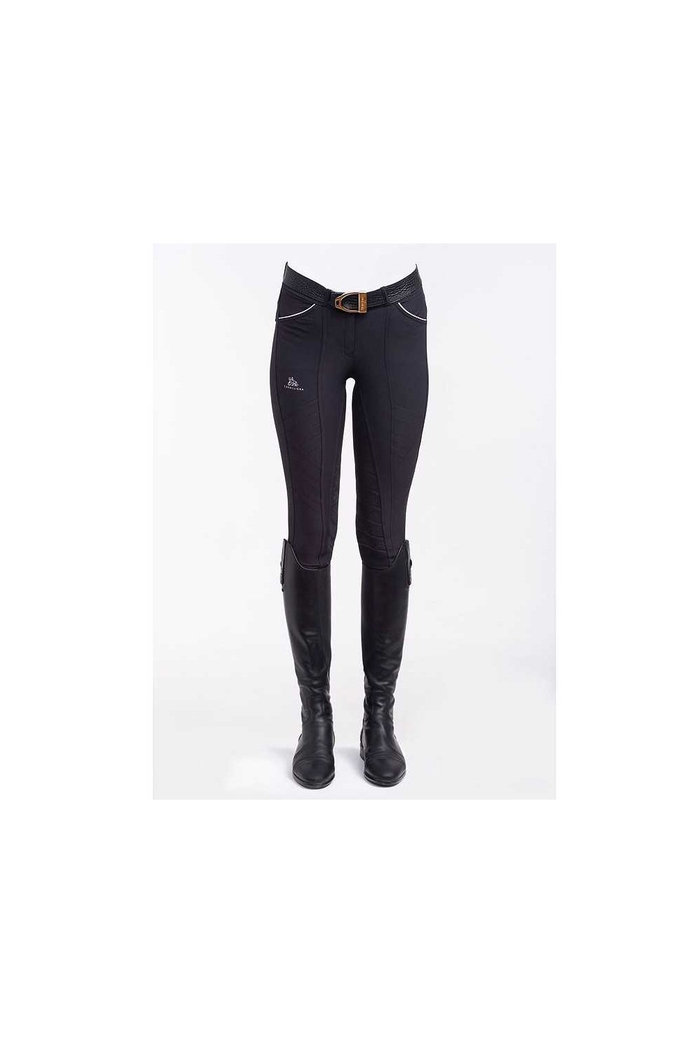 Pantalones hí­picos que combinan un estilo elegante con tejidos ligeros y la tecnologí­a Meryl Fiber. Desarrollados para un uso activo, de secado rápido y comodidad excepcional durante la competición. Estos pantalones de montar sientan bien en cualquier tipo de figura y elevan y mejoran la movilidad de las rodillas gracias a su revestimiento especial en los laterales. Con tecnologí­a de agarre: el grip de silicona de la zona del asiento brinda una gran seguridad en la monta y una posición de las piernas más firme, sin el volumen adicional de una capa full-seat. El grip interior de la banda elástica de la cintura proporcionará a la amazona una gran sujeción a este nivel incluso en los movimientos extremos. Muy completos, con pasadores anchos y bolsillos profundos en la parte trasera y delantera con perfiles en contraste. Parte inferior de cada pernera en lycra para colocar las botas más fácilmente. ¿No compites? Aún así­ te mereces estos pantalones de montar profesionales y elegantes.