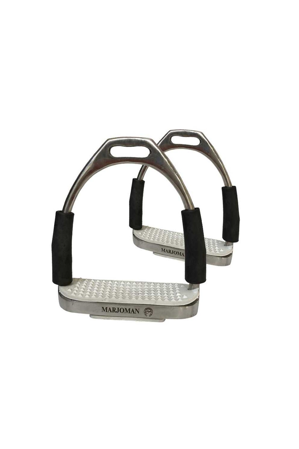 Estribo articulado de acero inoxidable con gomas en las partes articuladas.