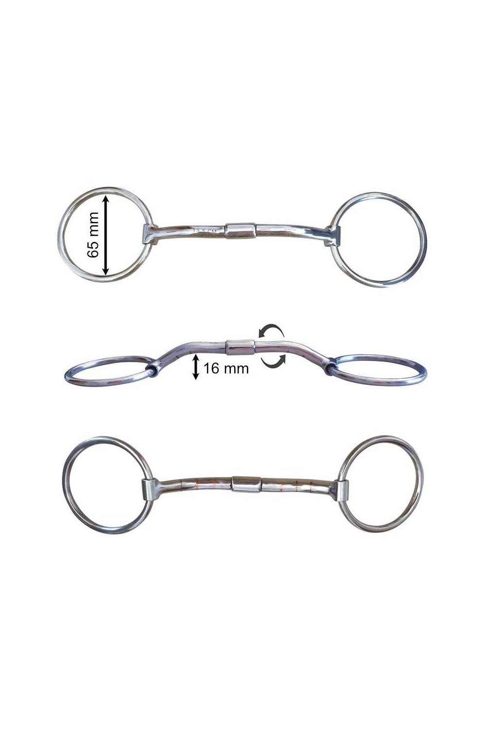 La presión de la embocadura es uniforme. En el centro hay un rodillo que facilita la distribución de las presiones en la lengua. Cada uno de los lados del filete de revólver se mueve de manera independiente, por lo que descansa de forma muy estable y suave en la boca del caballo.