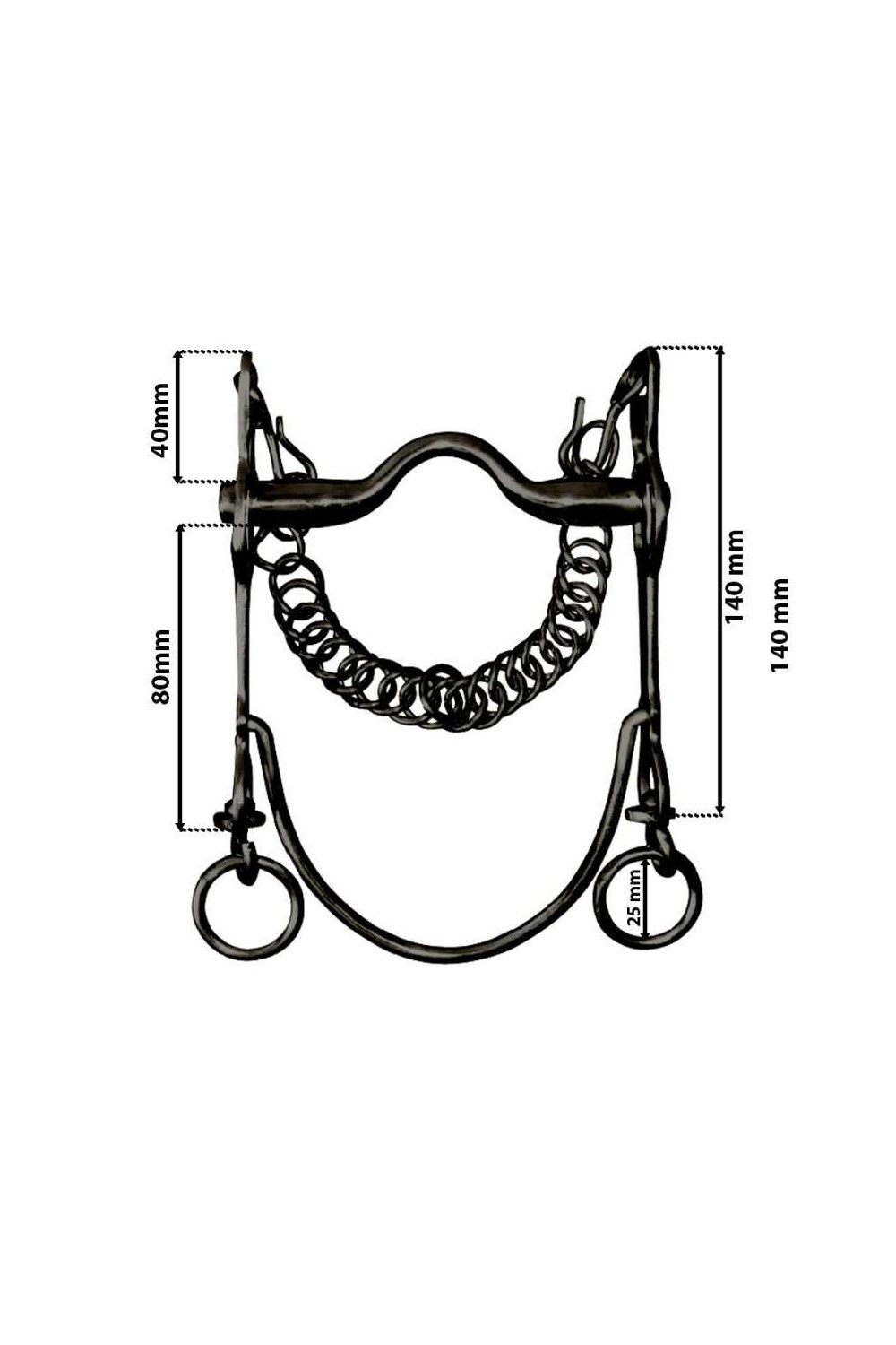 Bocado empleado en la monta tradicional vaquera española. Este modelo económico tiene un acabado pavonado, una embocadura que oscila arriba y abajo ligeramente y barra inferior curva.