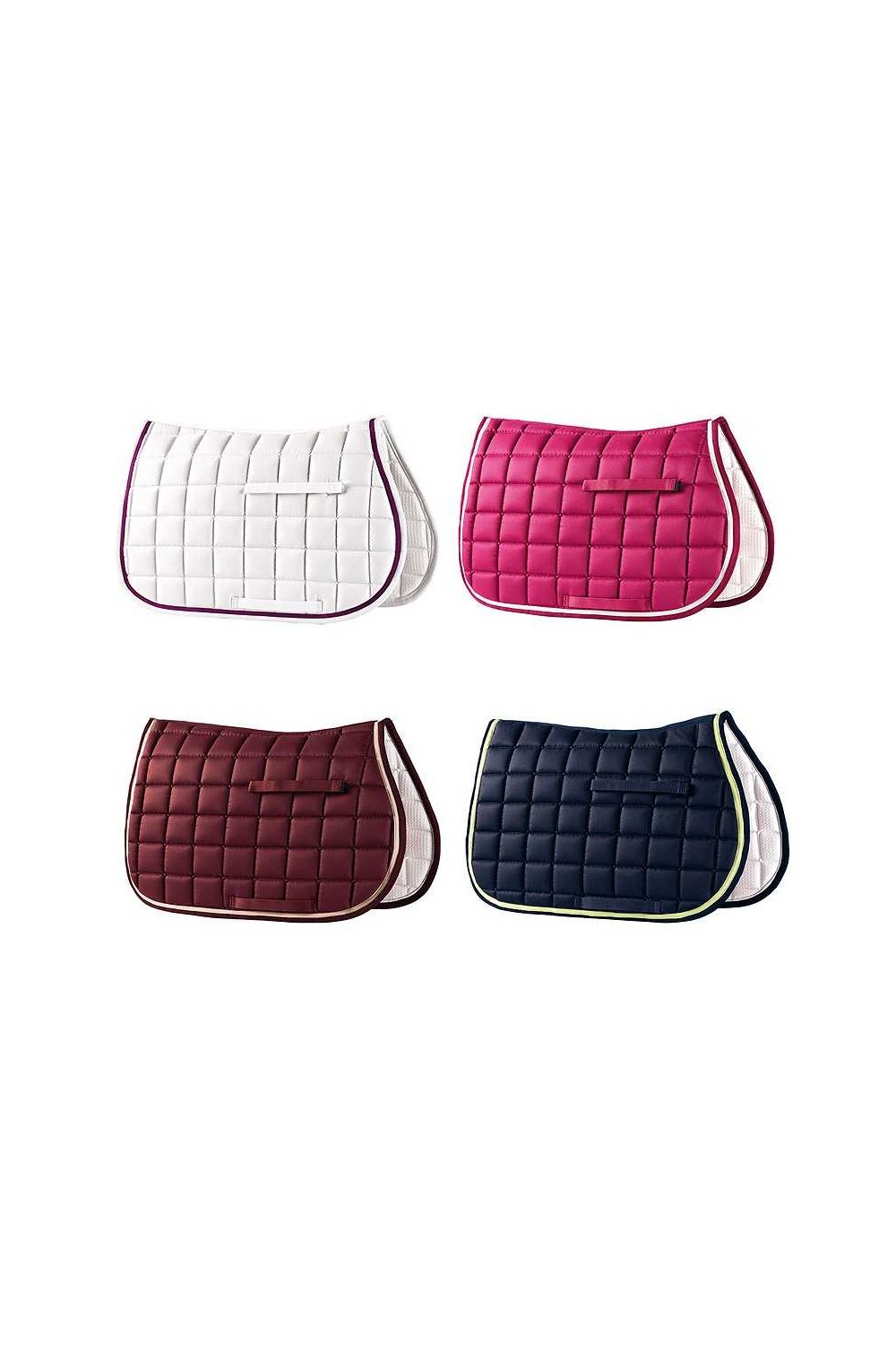 Realizada en poliéster en la parte externa con un pespunteado en forma de cuadrados acolchados 7x7, foam 12 mm y 220 gr polyfill. Decorada con cintas en contraste.
