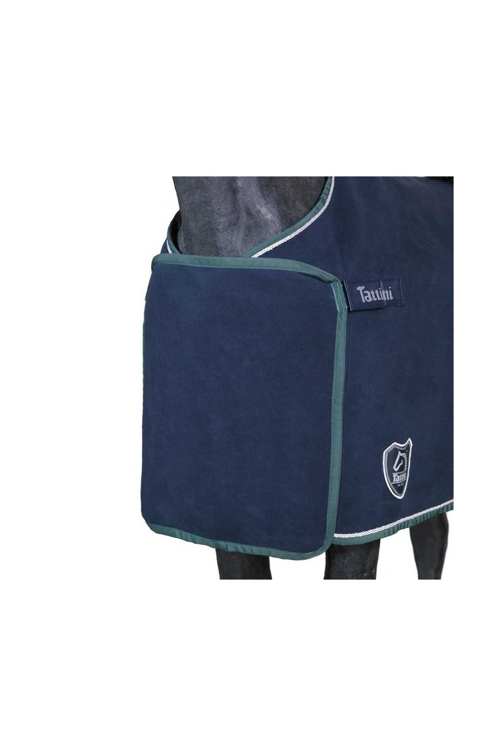 En polar doble 400 g anti-pilling de dos colores, azul en el exterior y verde en el interior, perfilado con un cordoncillo en contraste, cierre delantero con gancho en T, baticola interior. Incluye solapa desmontable en talla £nica que se engancha a la manta mediante tiras de velcro ajustables, ideal para entregas de premios o como manta de patrocinio. Posibilidad de bordado.Equivalencia de medidas: