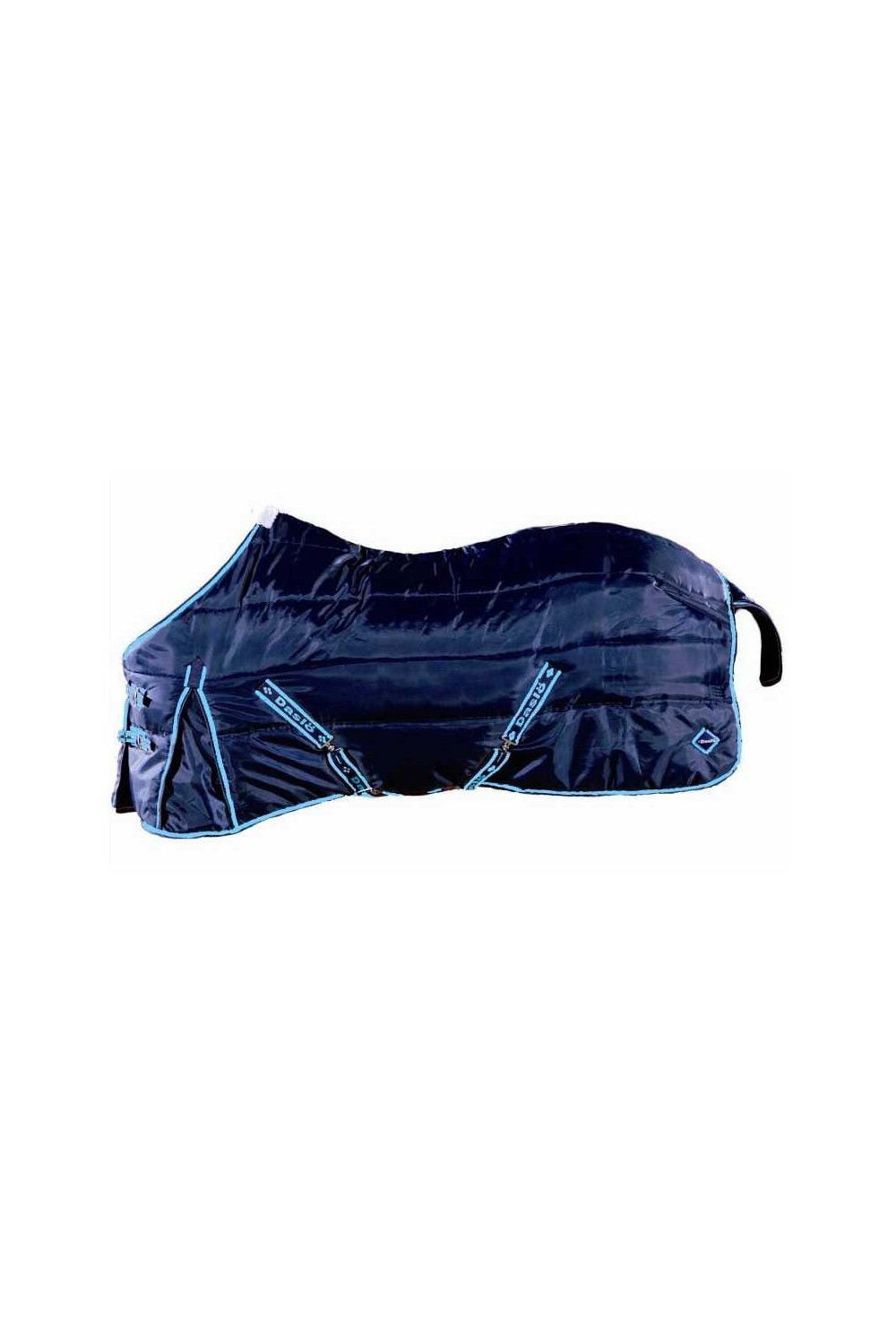 Pespunte horizontal - tejido exterior poliéster 420D - relleno polyfill 250 gr- forro en nylon - con cubrecola, pliegues delanteros, dos correas de cierre delantero con hebillas - correas para los miembros de atrás - protección en la cruz en borreguillo sintético - correas cruzadas.