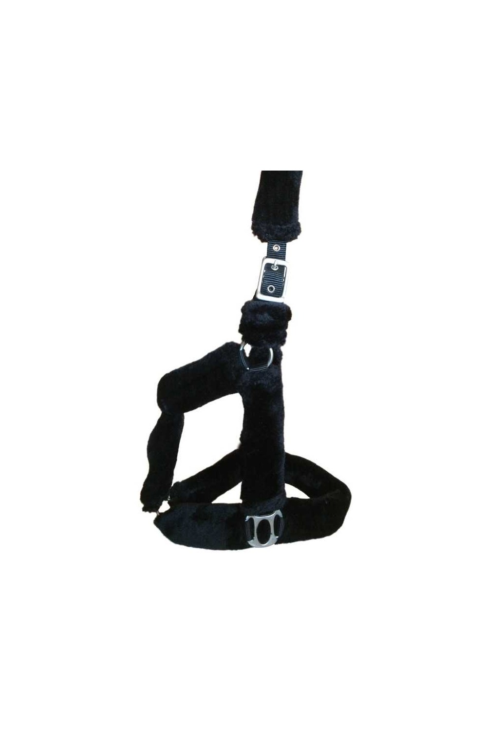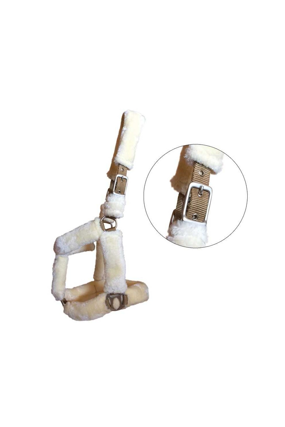 Cabezada de cuadra fabricada en nylon completamente recubierta en suave borreguillo, muy confortable para el caballo. Ajustable mediante hebillas y con mosquetón para una rápida colocación.