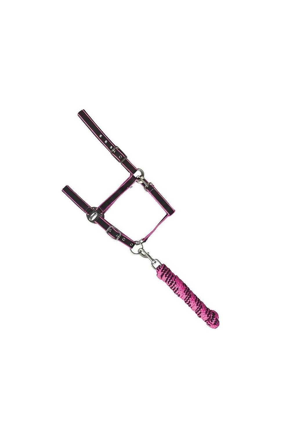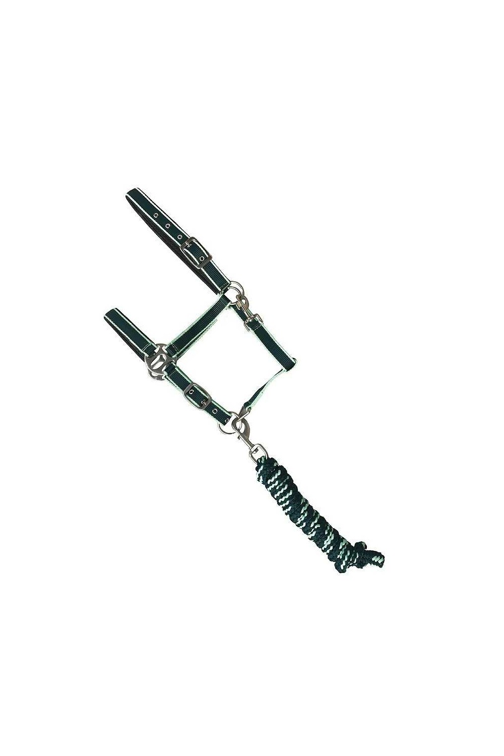 Cabezada de nylon fuerte y resistente en bonita combinación de colores. Con mosquetones para una rápida colocación.