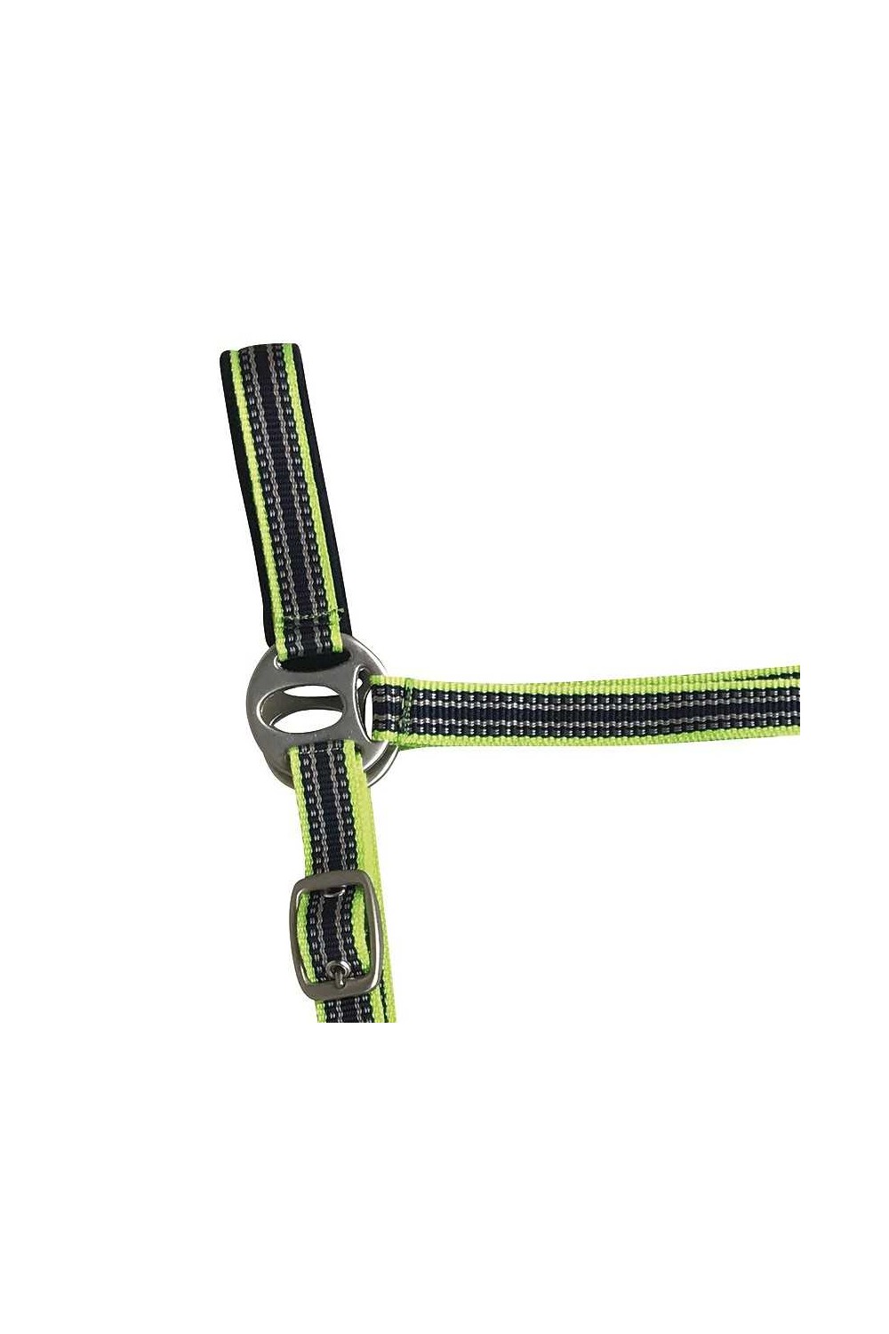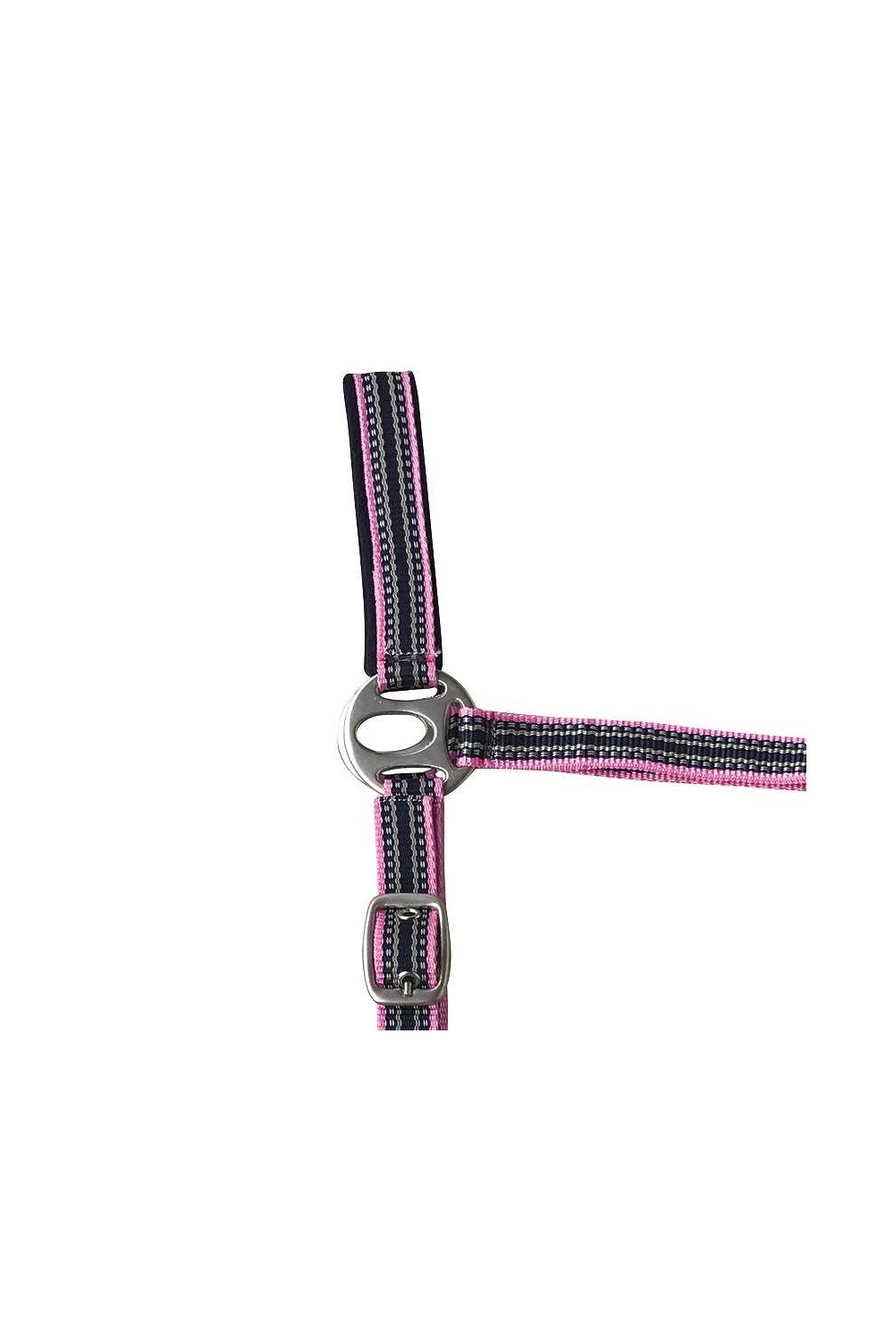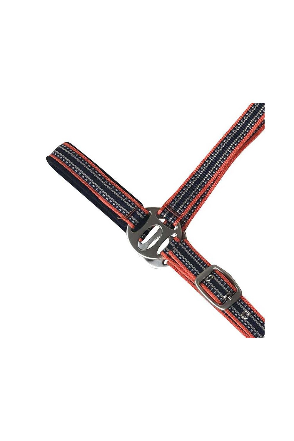Las correas del testero y la muserola están forradas en suave acolchado de 6 mm para que no produzcan rozaduras al caballo. Cuenta con un mosquetón para colocarla fácilmente y 2 hebillas para regular el tamaño. Hebillaje en color plateado. Incluye ramal a juego que se engancha con mosquetón.