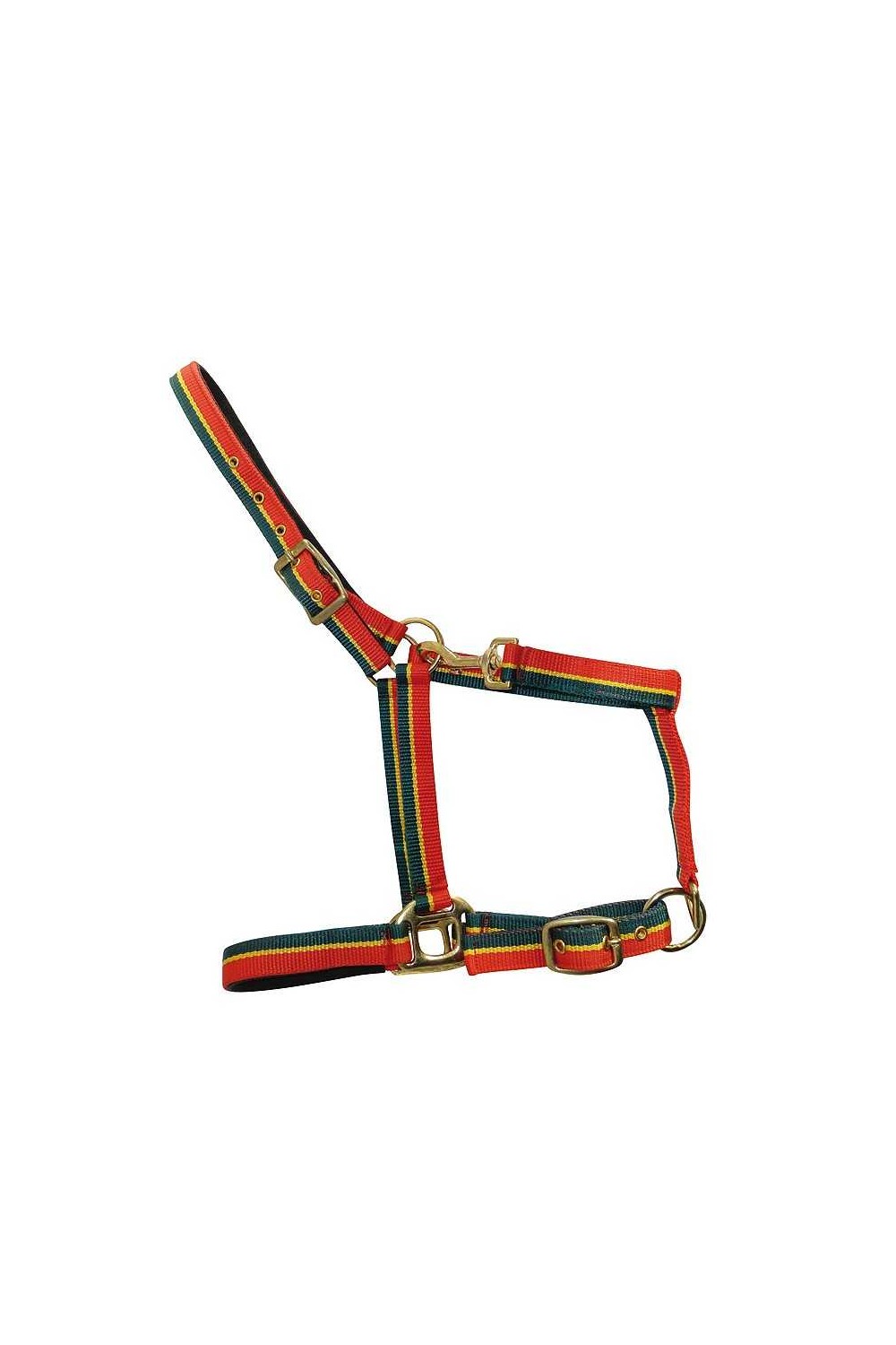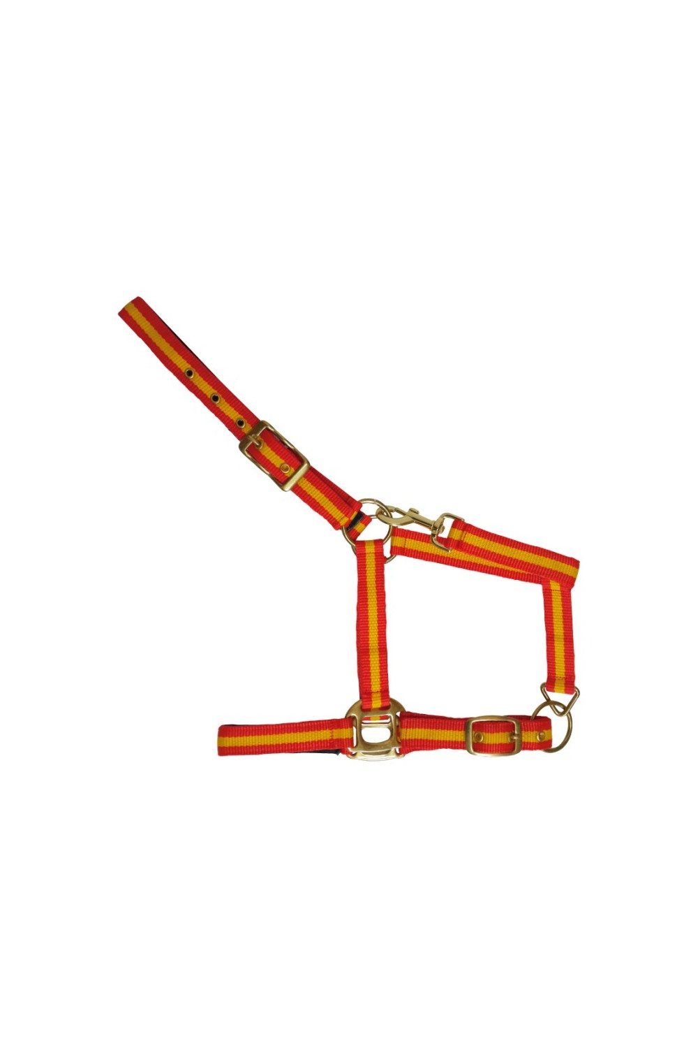 Modelo económico realizado en nylon de distintos colores. Esta cabezada se coloca y se retira cómodamente gracias a su cierre de mosquetón. Tiene dos hebillas para ajustar la medida a cada caballo. El interior de la zona del testero y de la muserola está reforzado con cuero.