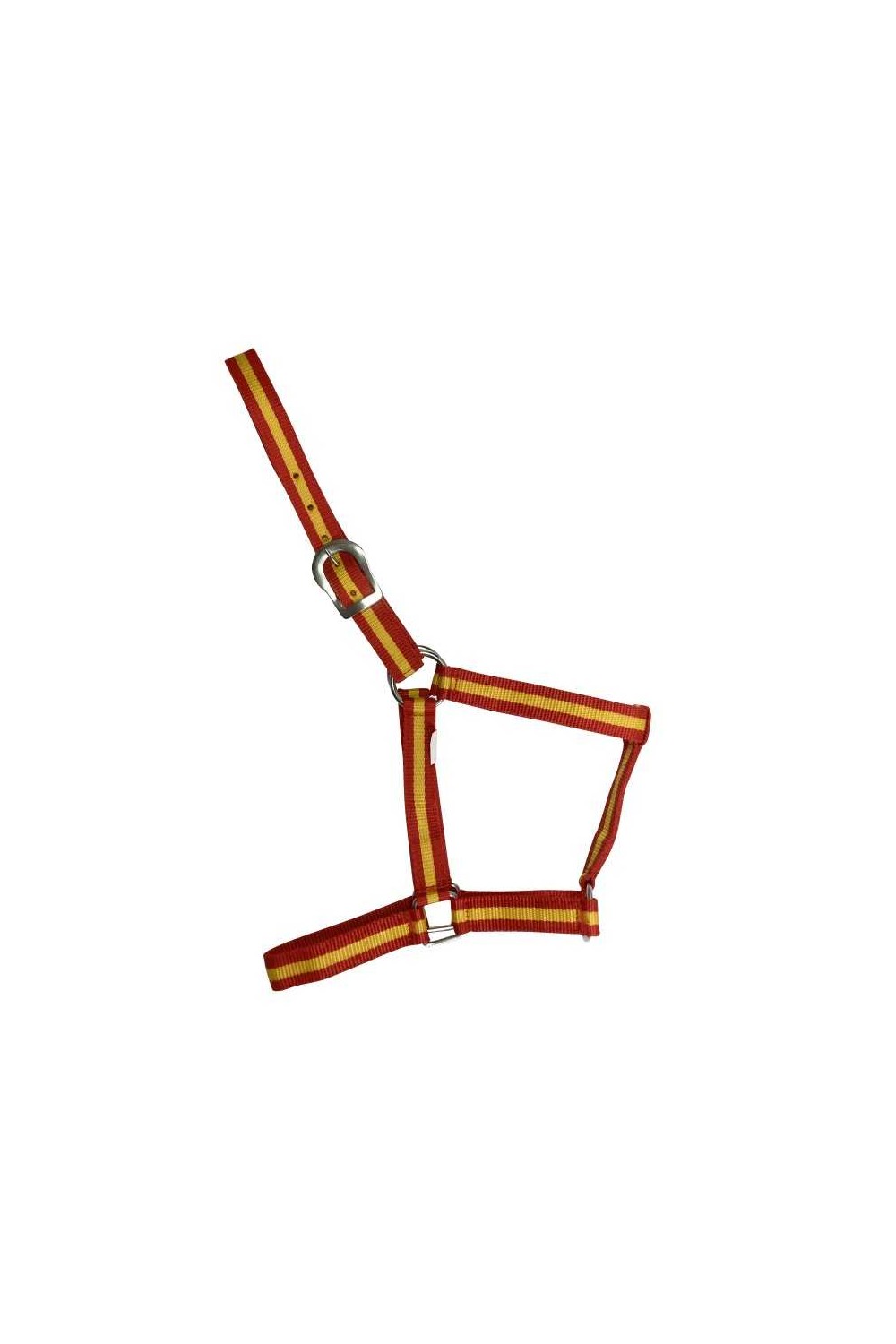 Es uno de los modelos más sencillos y económicos. Está realizado en nylon de distintos colores. Esta cabezada se coloca y se retira mediante una hebilla situada en la parte del testero que además sirve para ajustar la medida a cada caballo.
