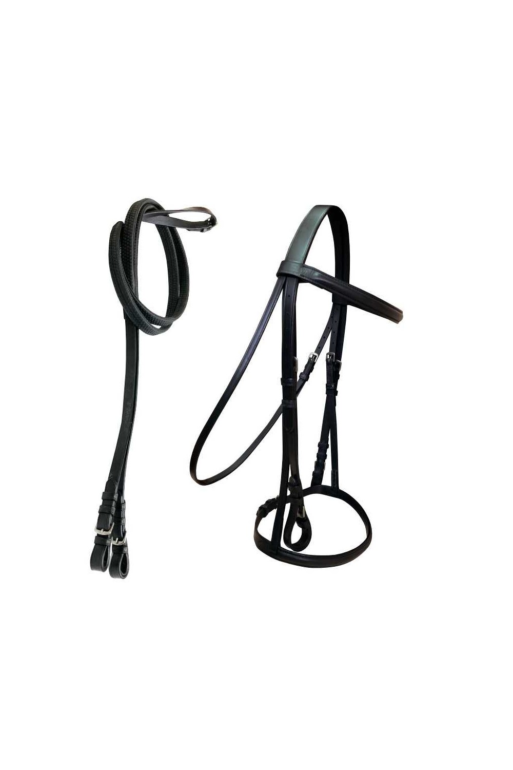 Cabezada inglesa con frontalera y muserola alomadas, modelo económico.