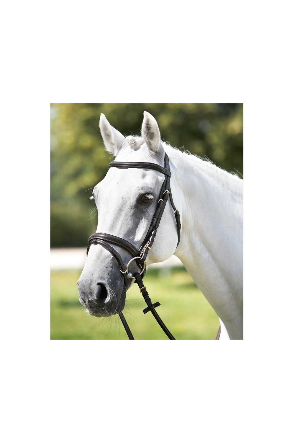 Realizada en cuero 100% curtición vegetal, sin cromo, sin sustancias nocivas e hipoalergénico. Con frontalera y muserola moldeadas, alomadas y acolchadas. Testero moldeado. Riendas con forro de goma suave.