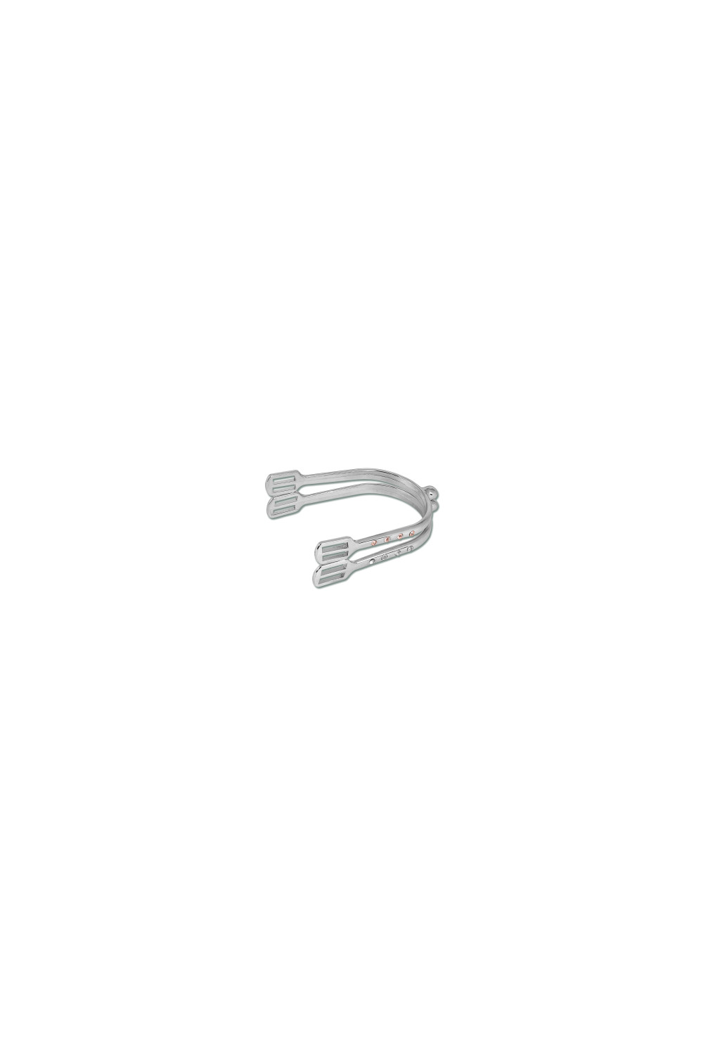 Espuelas con perno, en el lado exterior dotadas de piedrecitas estrás. Con correas de perlón inoxidables