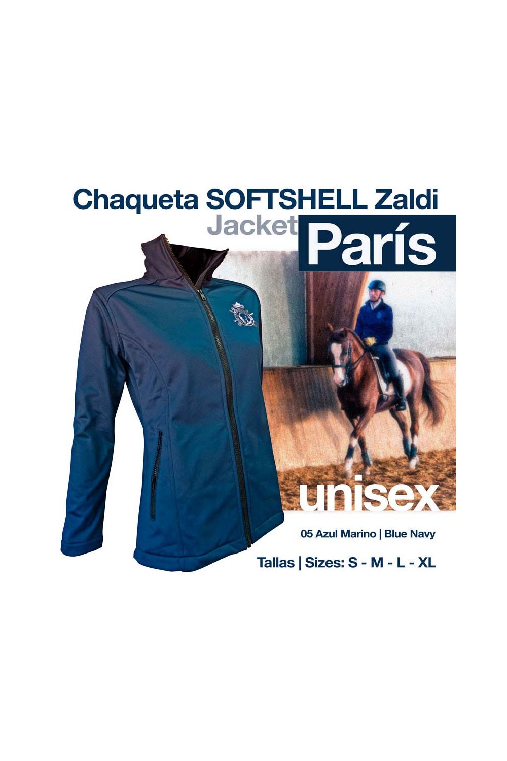 Nueva chaqueta "modelo París" decorado con un identificativo escudo hípico, fabricado en tejido softshell (este material está compuesto por varias capas que crean en su exterior