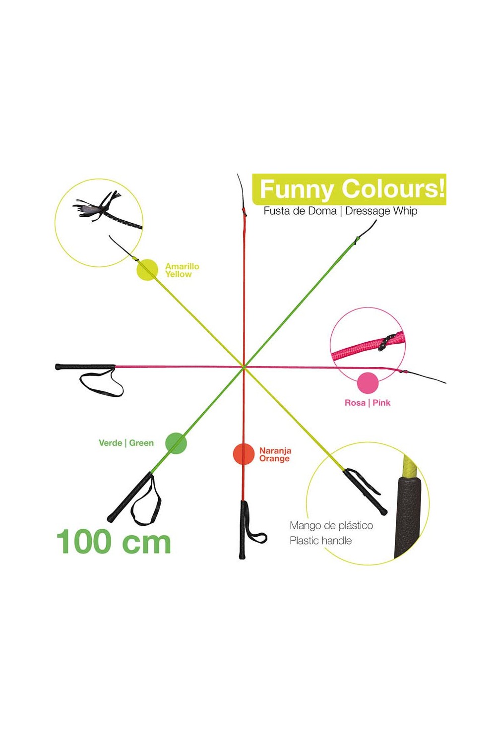Atractivo y moderno color fluorescente, ideal para distinguirla en los picaderos, clubs, centros hípico, escuelas de equitación donde todos los jinetes utilizan el tradicional color negro.
