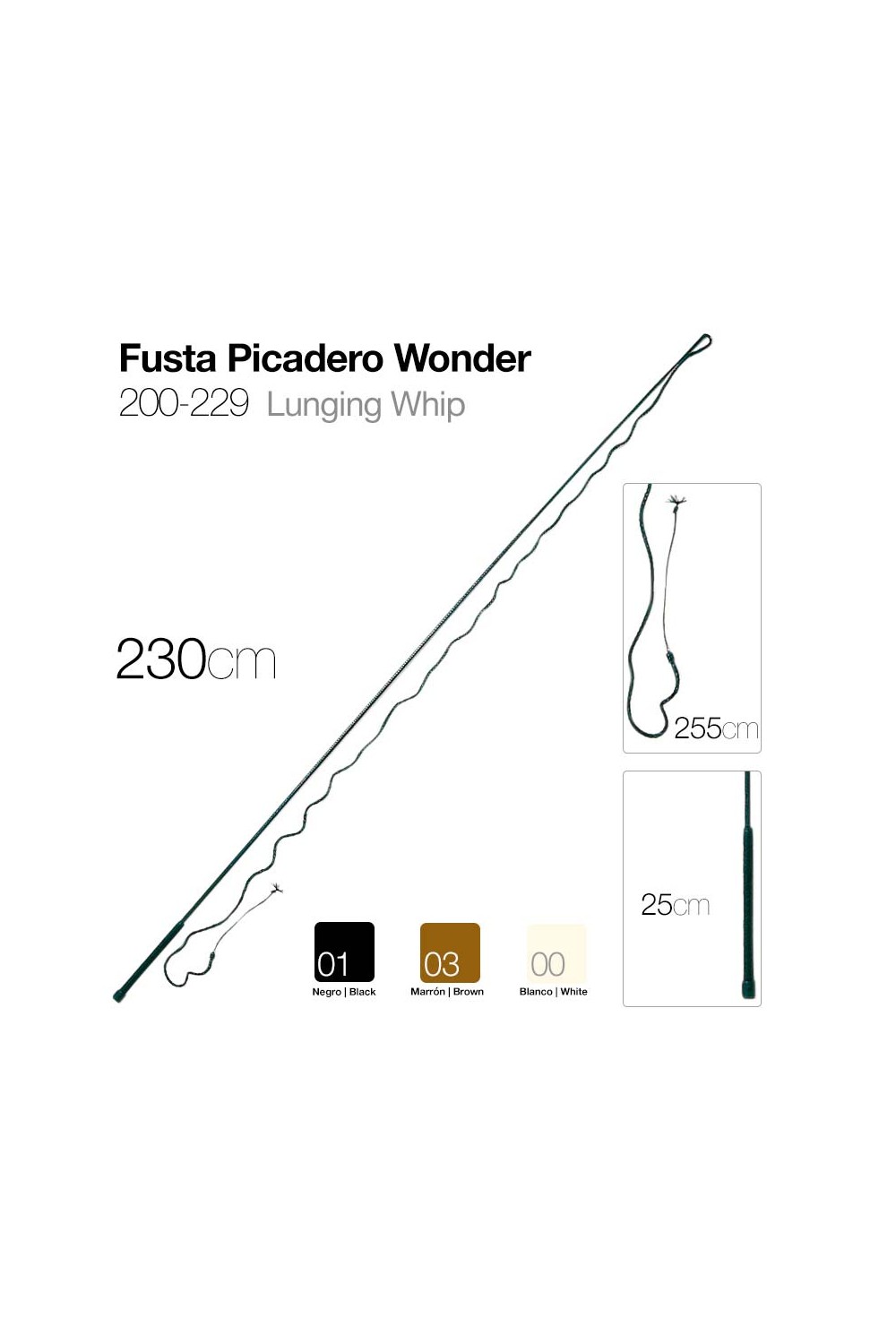 Fusta de picadero de 230 cm y 255 cm de latiguillo.