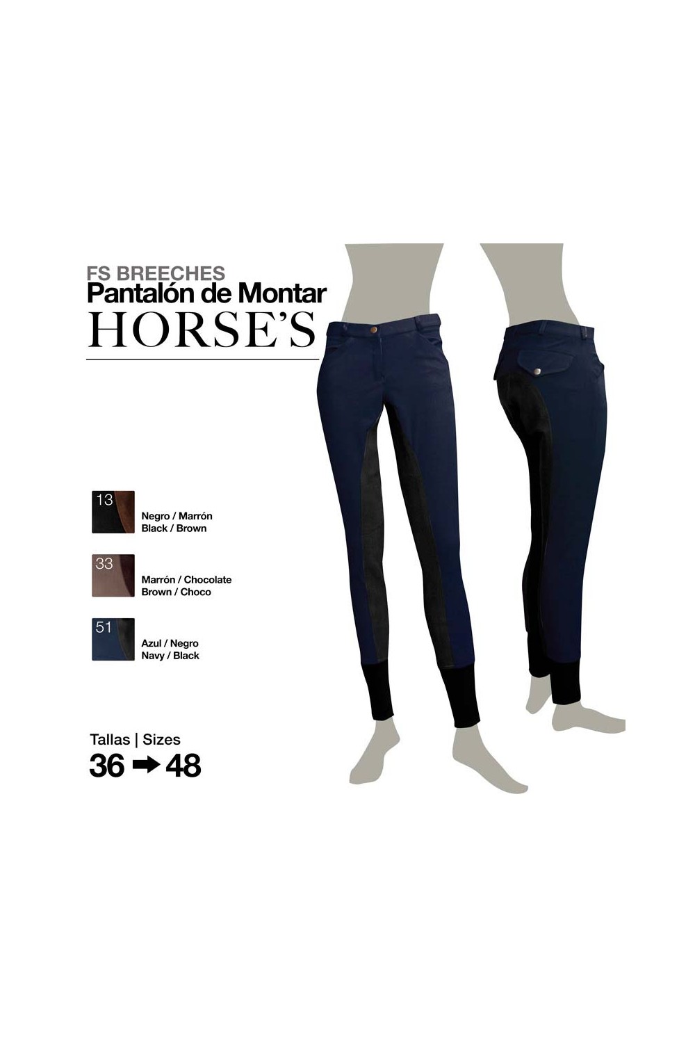 Colores : Azul con la culera en Negro, Marrón con la culera en Chocolate, Negro con la culera en Marrón.