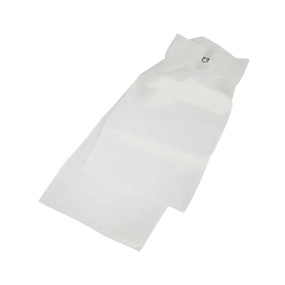 El plastrón en tejido técnico blanco clásico es una prenda fundamental en el uniforme de competición.