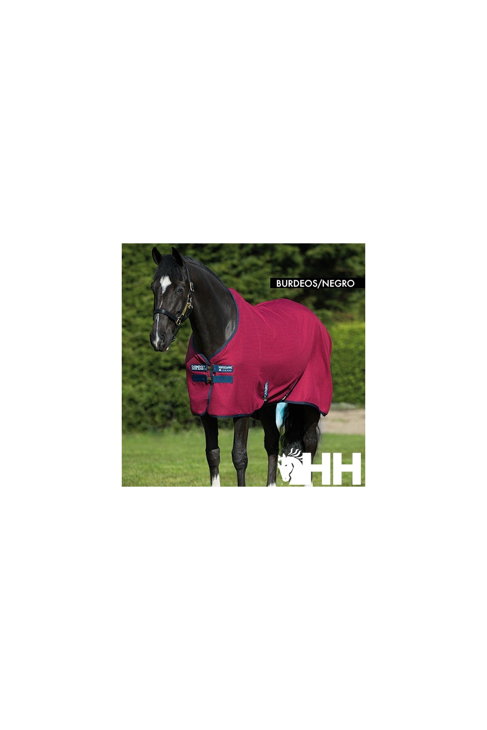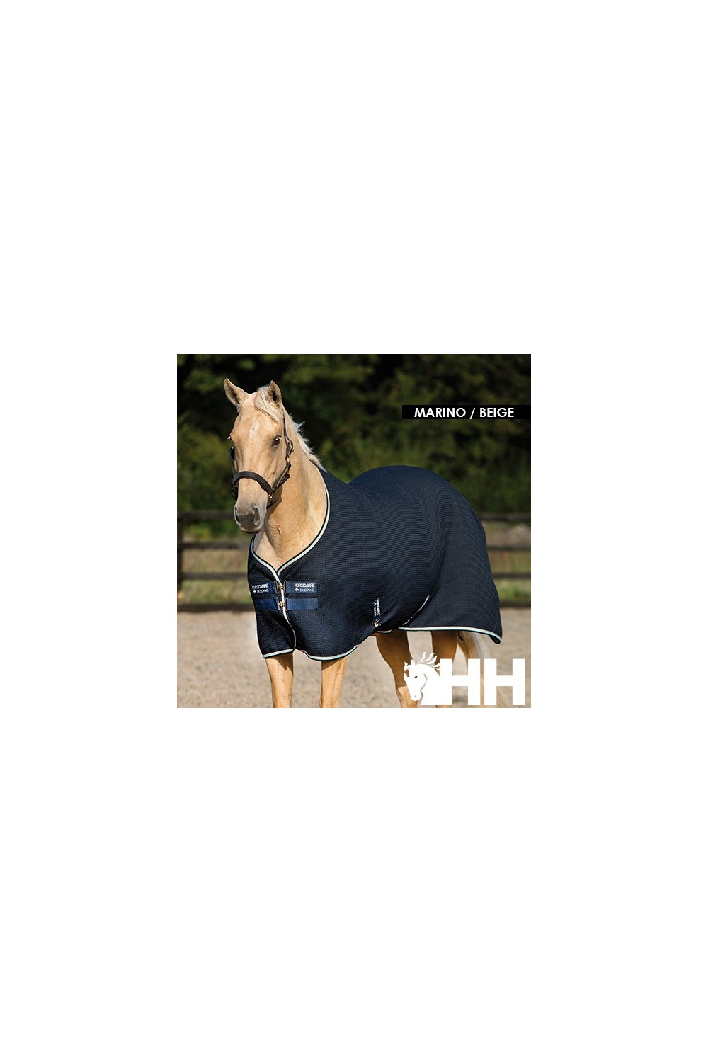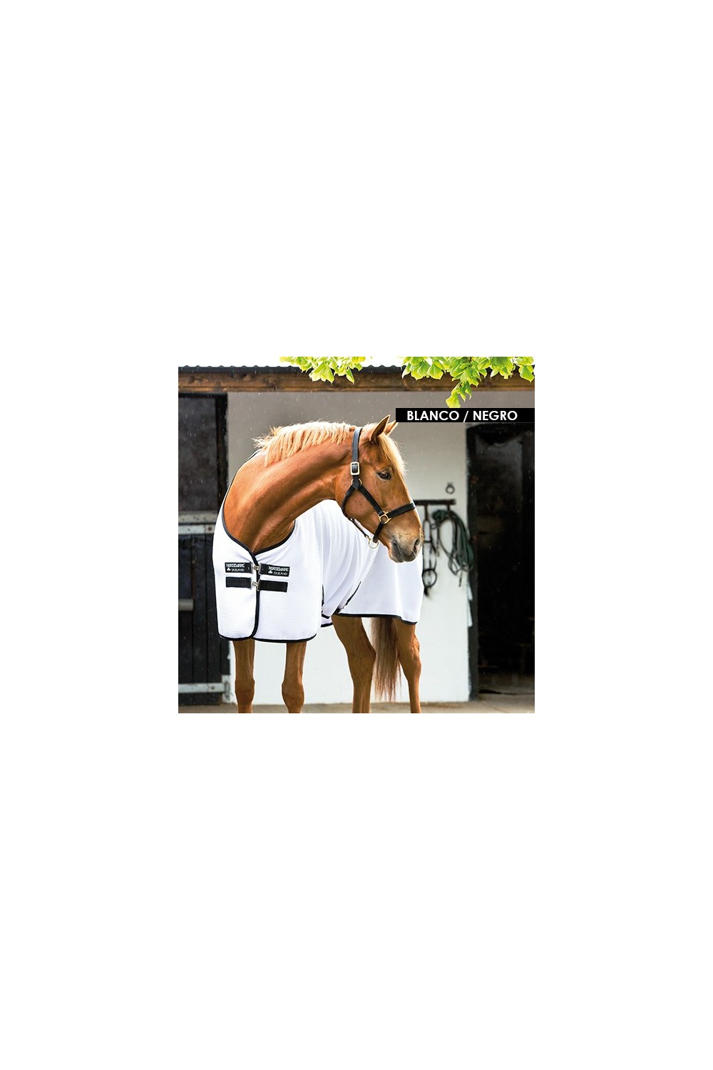 La tela blanca refleja el calor del sol, mientras que el diseño en recuadros favorece el control de la humedad y ayuda a secar al caballo, rápida y eficazmente, absorbiendo la transpiración de este.