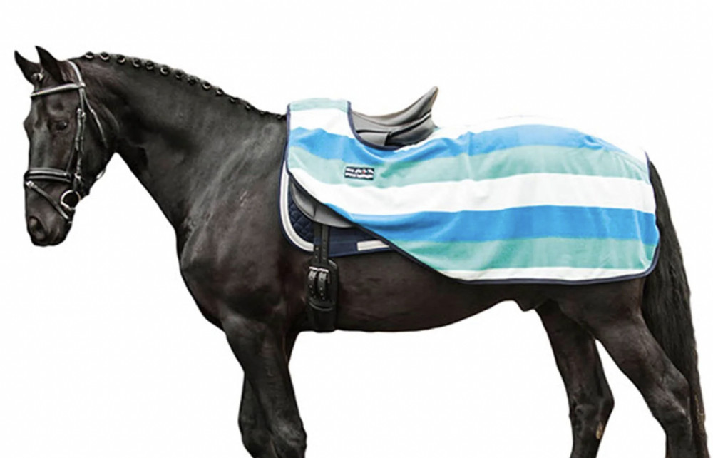 Manta riñonera polar para entrenar. Tiene un diseño peculiar por su estampado e rayas en varios colores. Su cierre se hace mediante un velcro el cual se colocará por la zona del borren delantero de la montura.