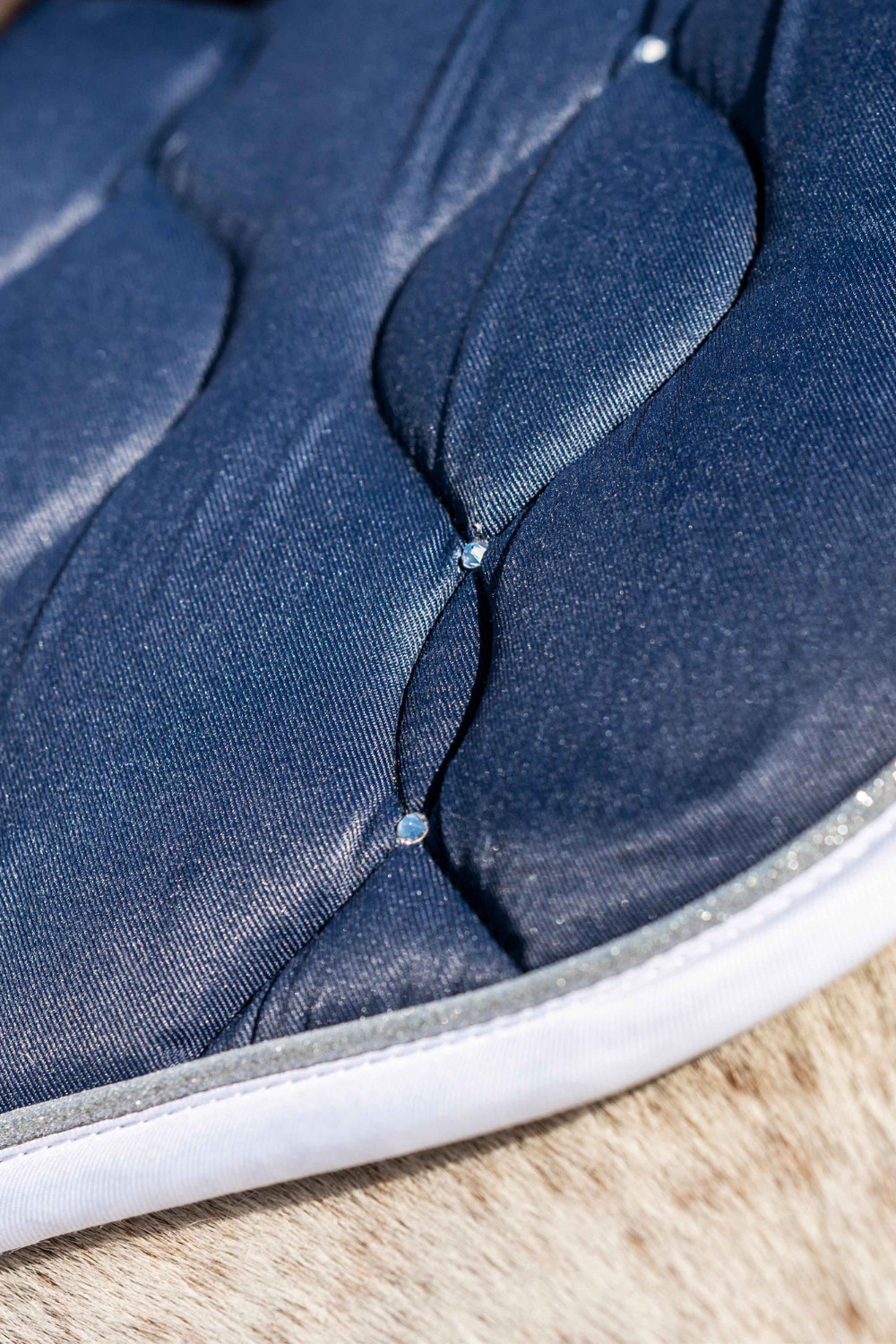 Mantilla de salto para competición. Tiene un acabado muy deportivo y exclusivo de estampado en forma circular. Vienen cosidas unas tiras en la zona de la montura y la cincha de modo que tenga un agarre más firme y no se vaya para atrás.