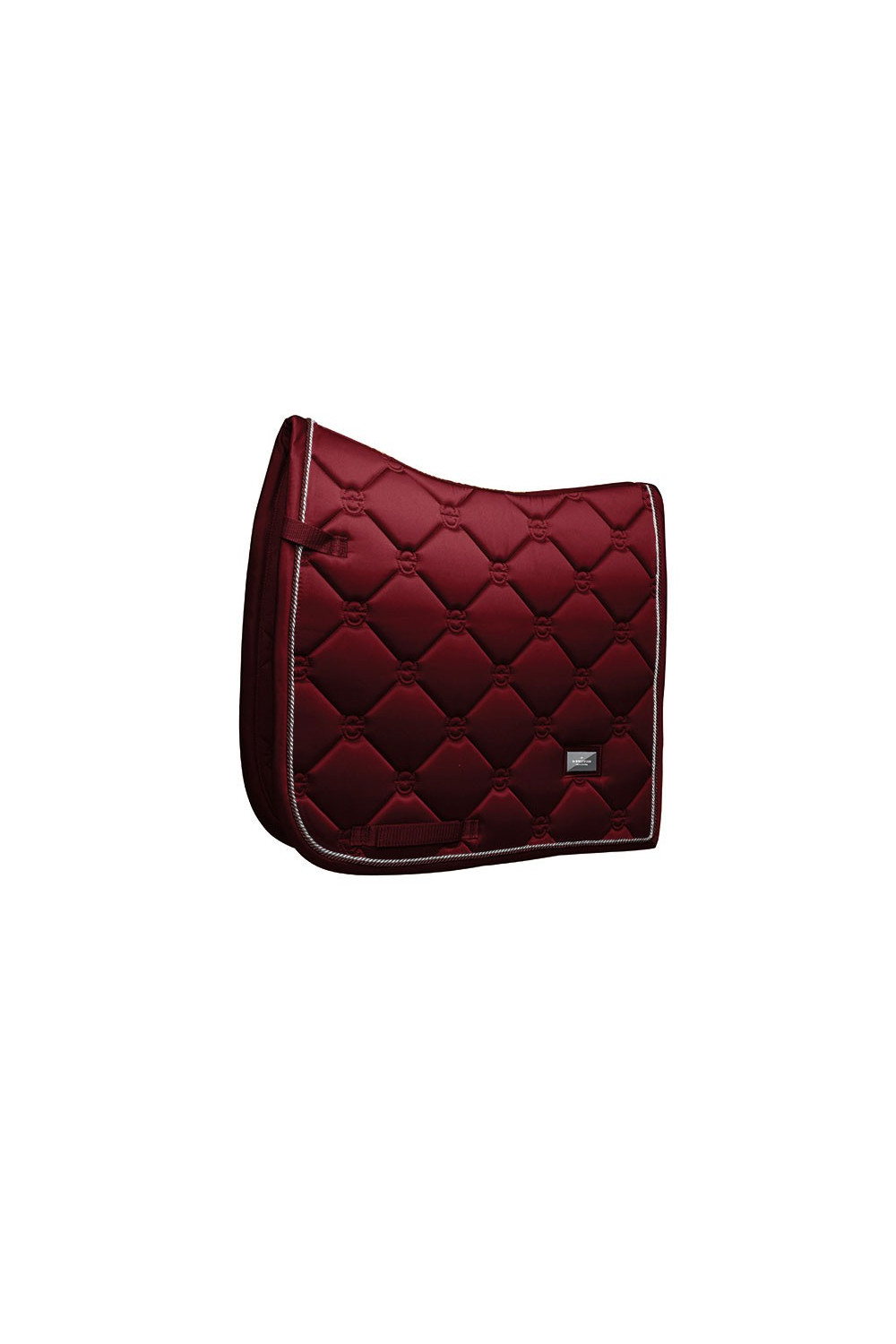 Logotipo acolchado sobre una placa metalizada en la parte inferior lateral de la mantilla. Dale clase junto a otros productos de la misma colección Bordeaux o combinarla con la colección Dark Bordeaux para un look completo tanto para el jinete como para el caballo.