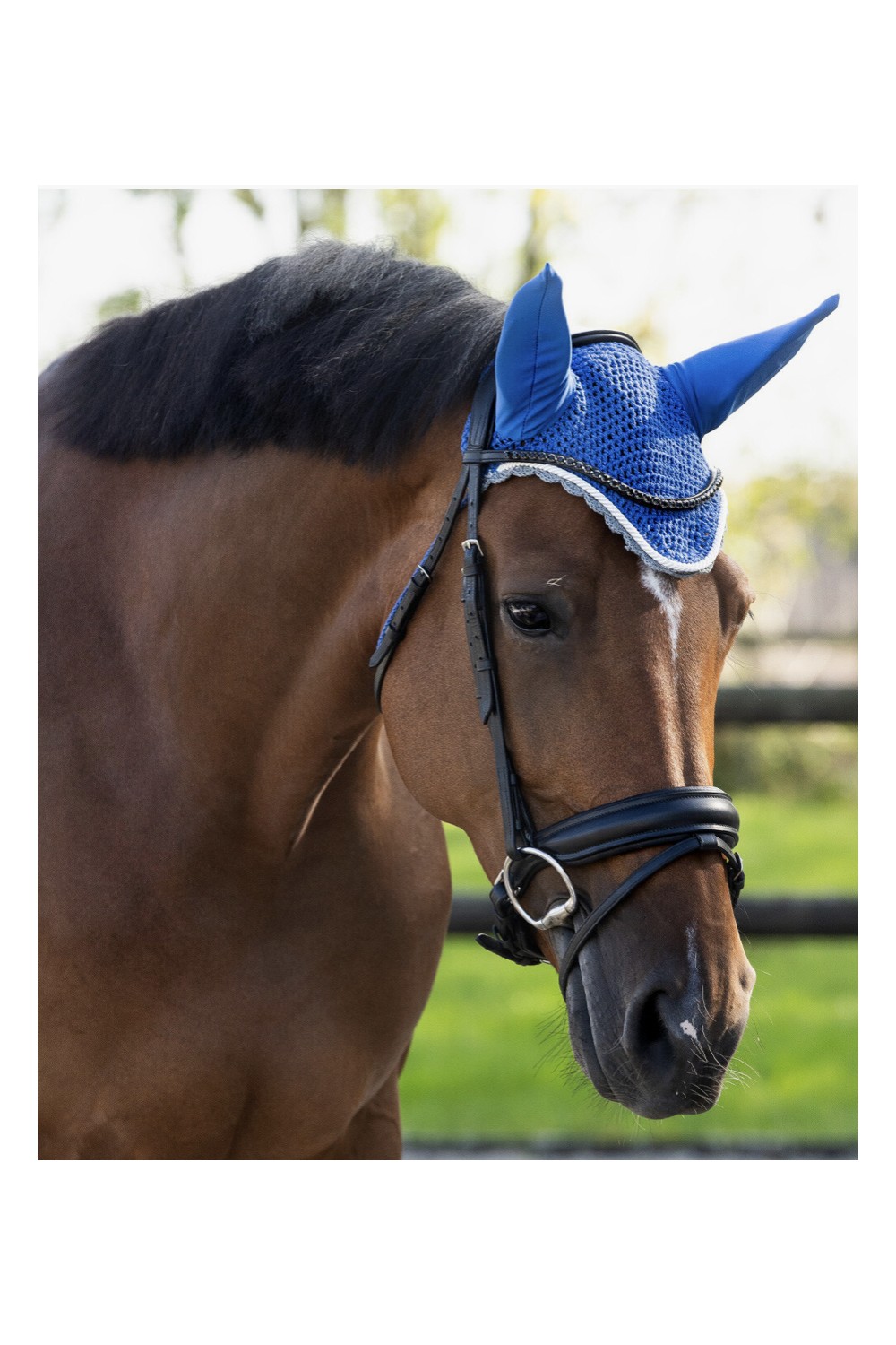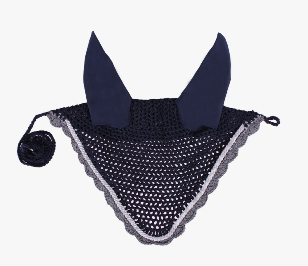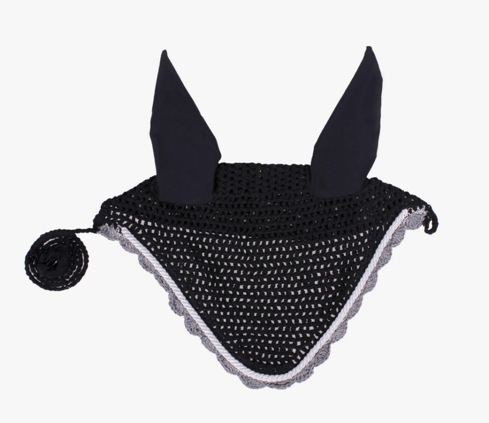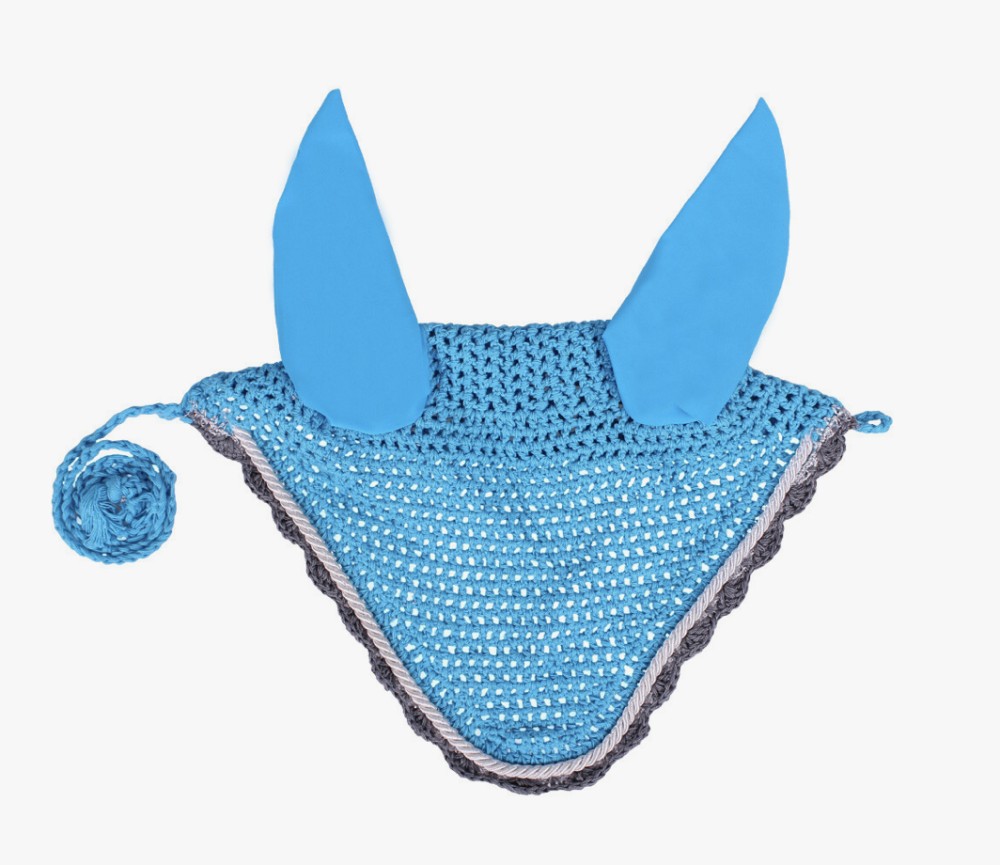 Estas orejeras son imprescindibles durante las sesiones de verano que protege las orejas y las expone de las moscas. La zona de las orejas es de tejido elástico para un mayor ajuste. La cuerda que sobresale sirve para atarlas al ahogadero.