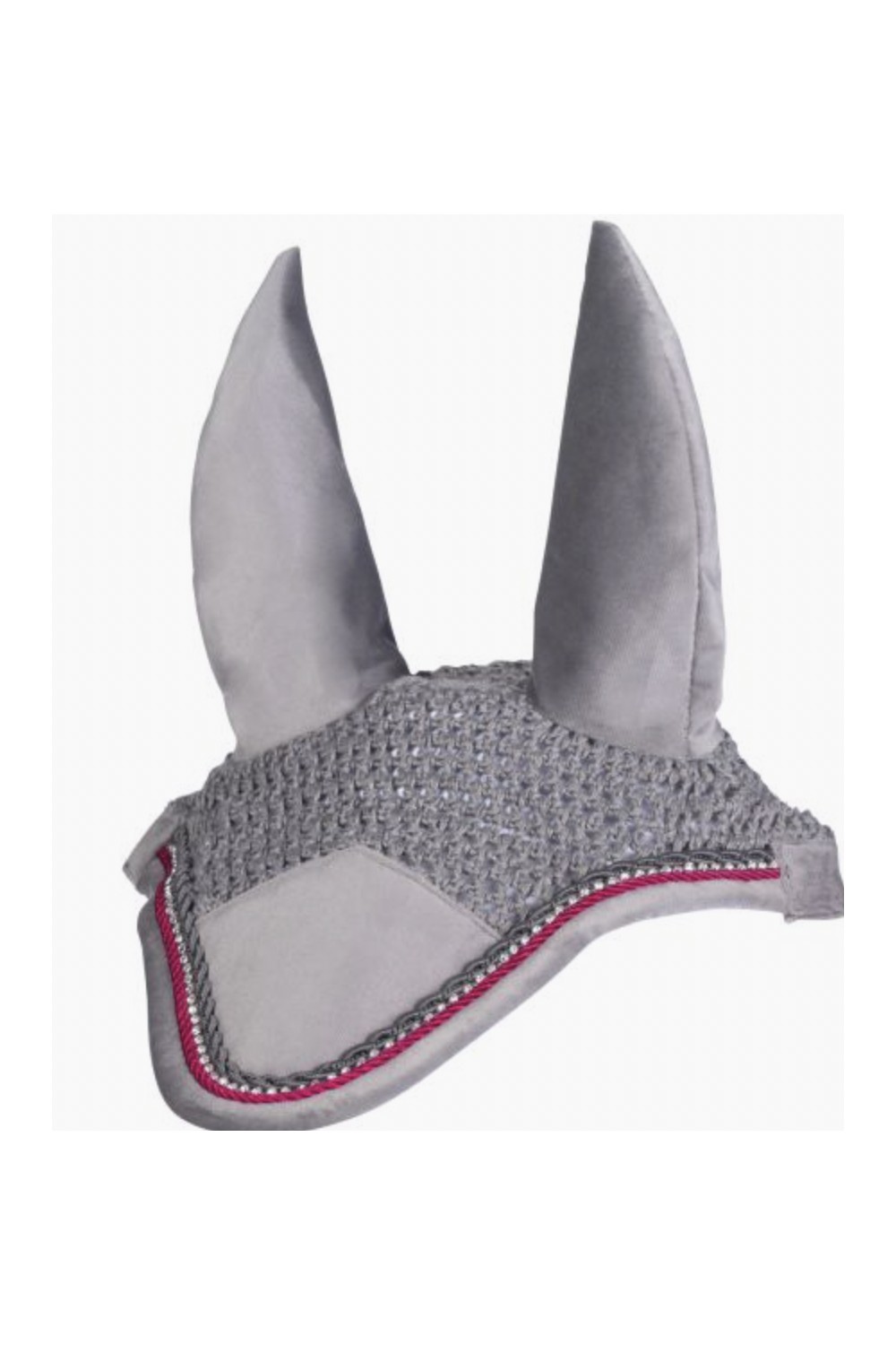 Orejeras hechas en un material elástico para una mayor comodidad para el caballo. Limitan el ruido y los insectos. Su diseño se basa en una hilera de brillos en la parte frontal y cubriendo todo el borde de la misma.