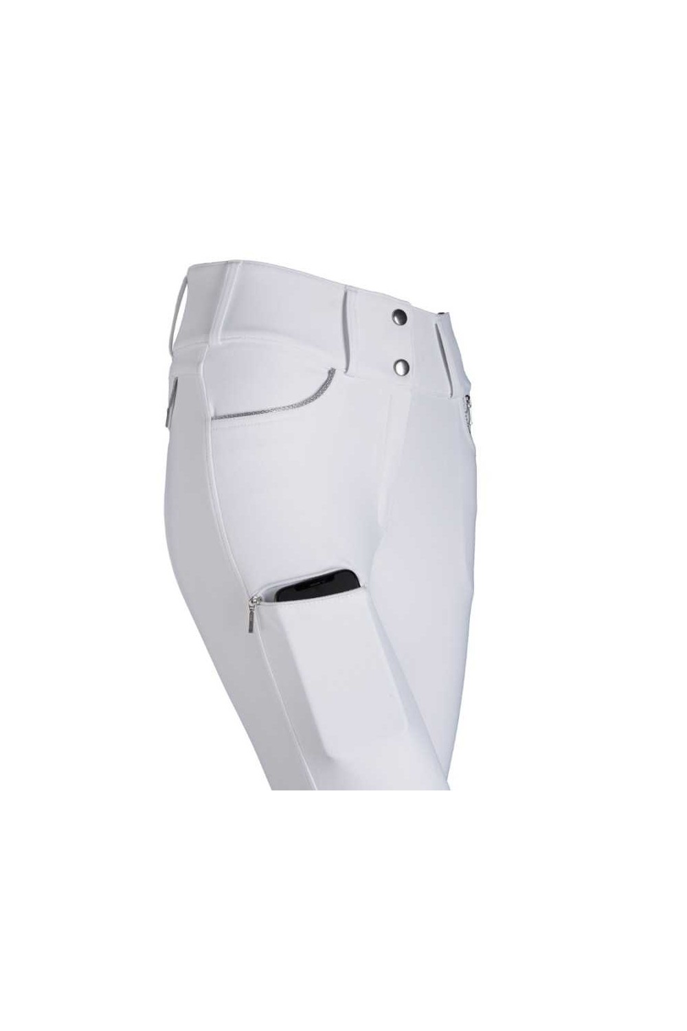 Pantalones hípicos de mujer en tejido técnico elástico de 300 g, hidrófugo y muy cómodo (nylon 82 %, elastán 18 %). Tejido técnico con tecnología de absorción del sudor y excelente factor de protección UV UPF 50+.