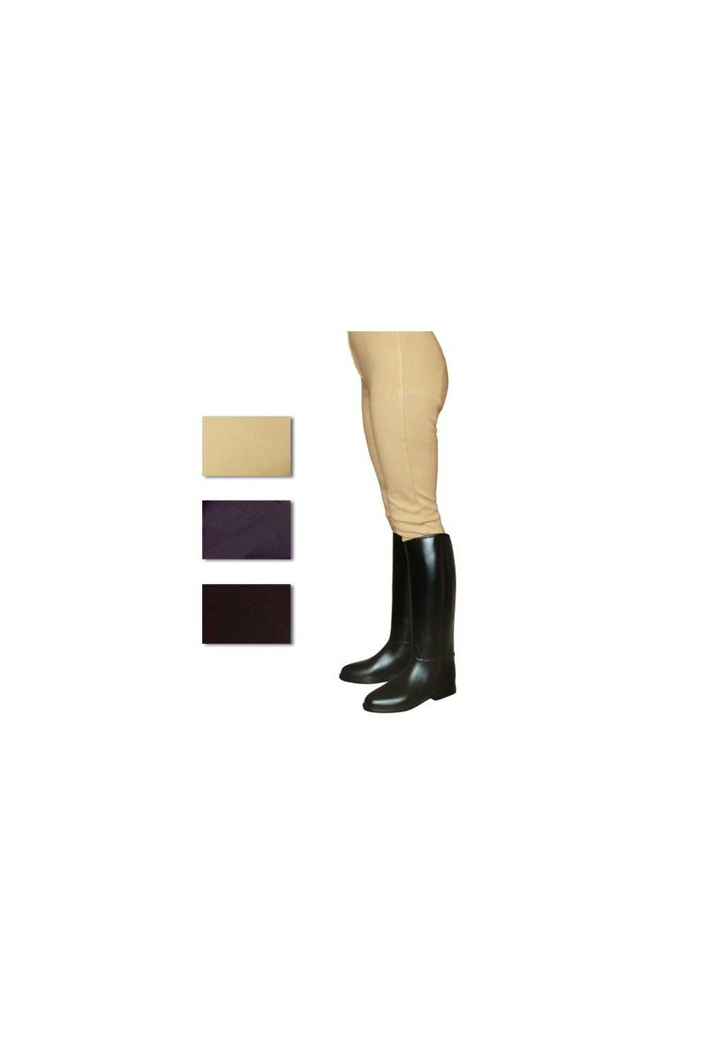Pantalón para montar a caballo para mujer realizado en tejido de algodón, muy fuerte y resistente al roce. Con trabillas para el cinturón y cierre de velcro en el tobillo.