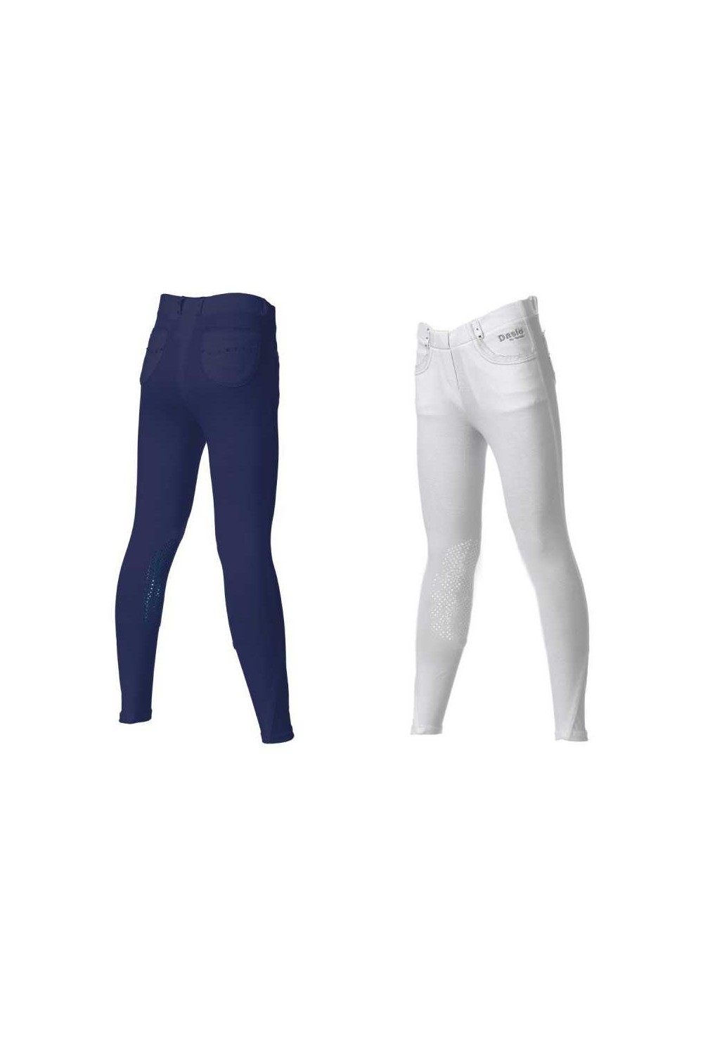 En punto de algodón elástico (95% algodón y 5% spandex), peso 320 g, de línea ajustada con antideslizante en silicona en el interior de la rodilla.
