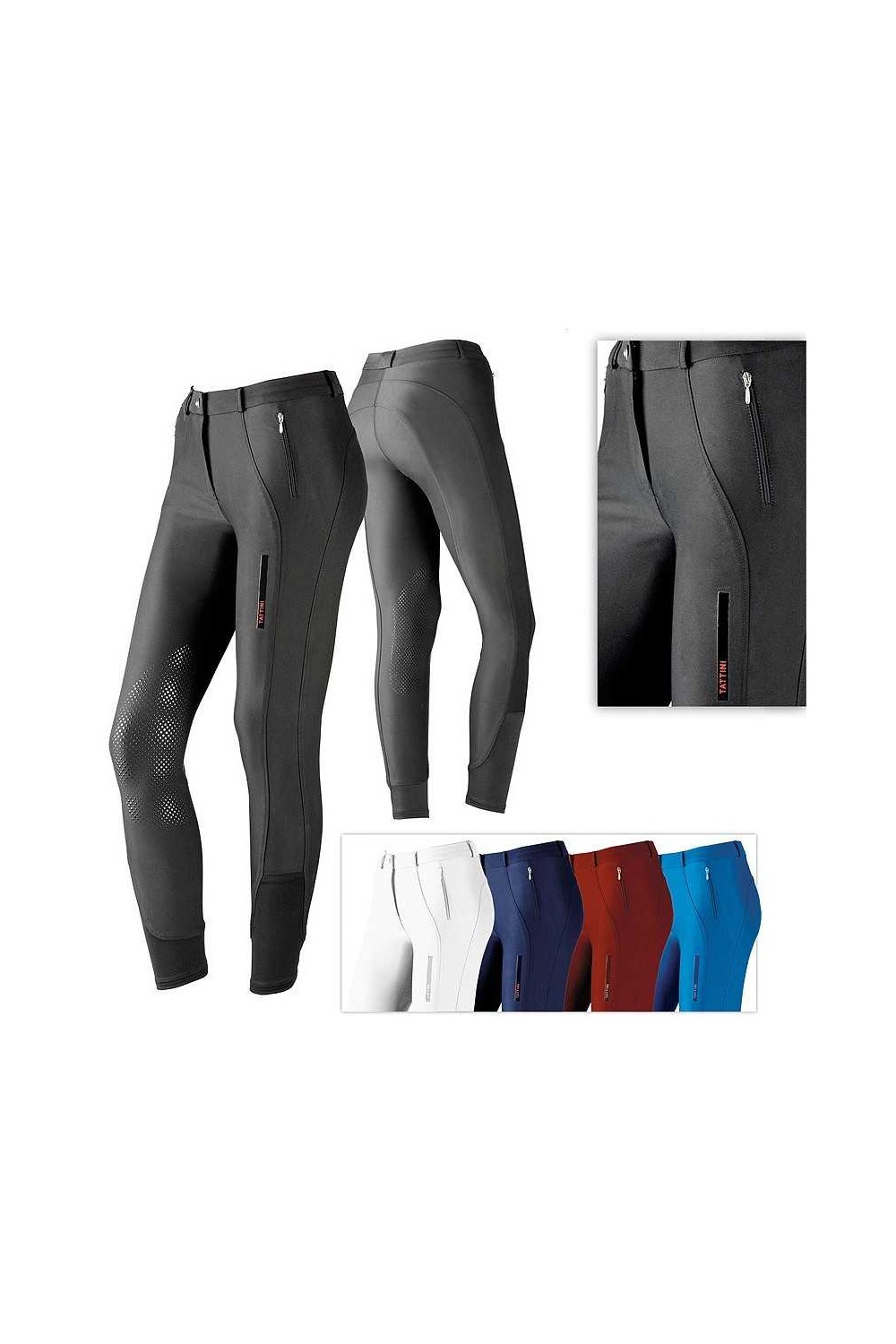 Modelo en tejido técnico ligero (90% nylon, 10% spandex), suave y extra cómodo, con cortes laterales verticales, bolsillos verticales con cremallera, asiento con forma, parches de silicona en la rodilla, inserciones en el tobillo.