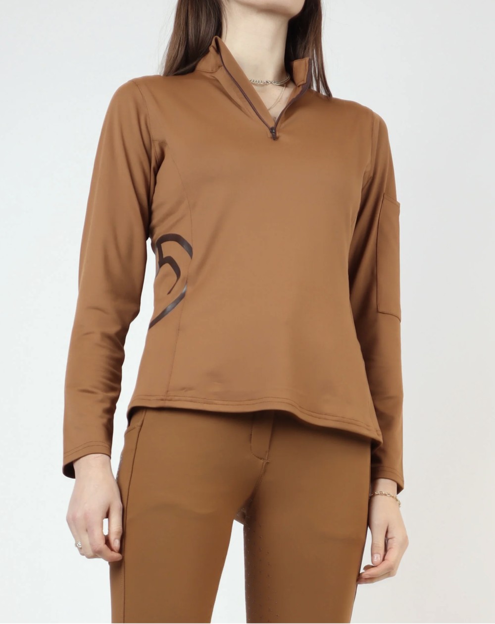 Camiseta Gudrun: tu mejor elemento esencial para montar a caballo de manga larga. Diseñado tanto para la funcionalidad como para el estilo, este top cuenta con un logotipo prominente de Montar en la cintura, un logotipo adicional en el cuello y una práctica cremallera. Eleva tu experiencia de conducción con la combinación perfecta de practicidad y diseño moderno de Gudrun.
